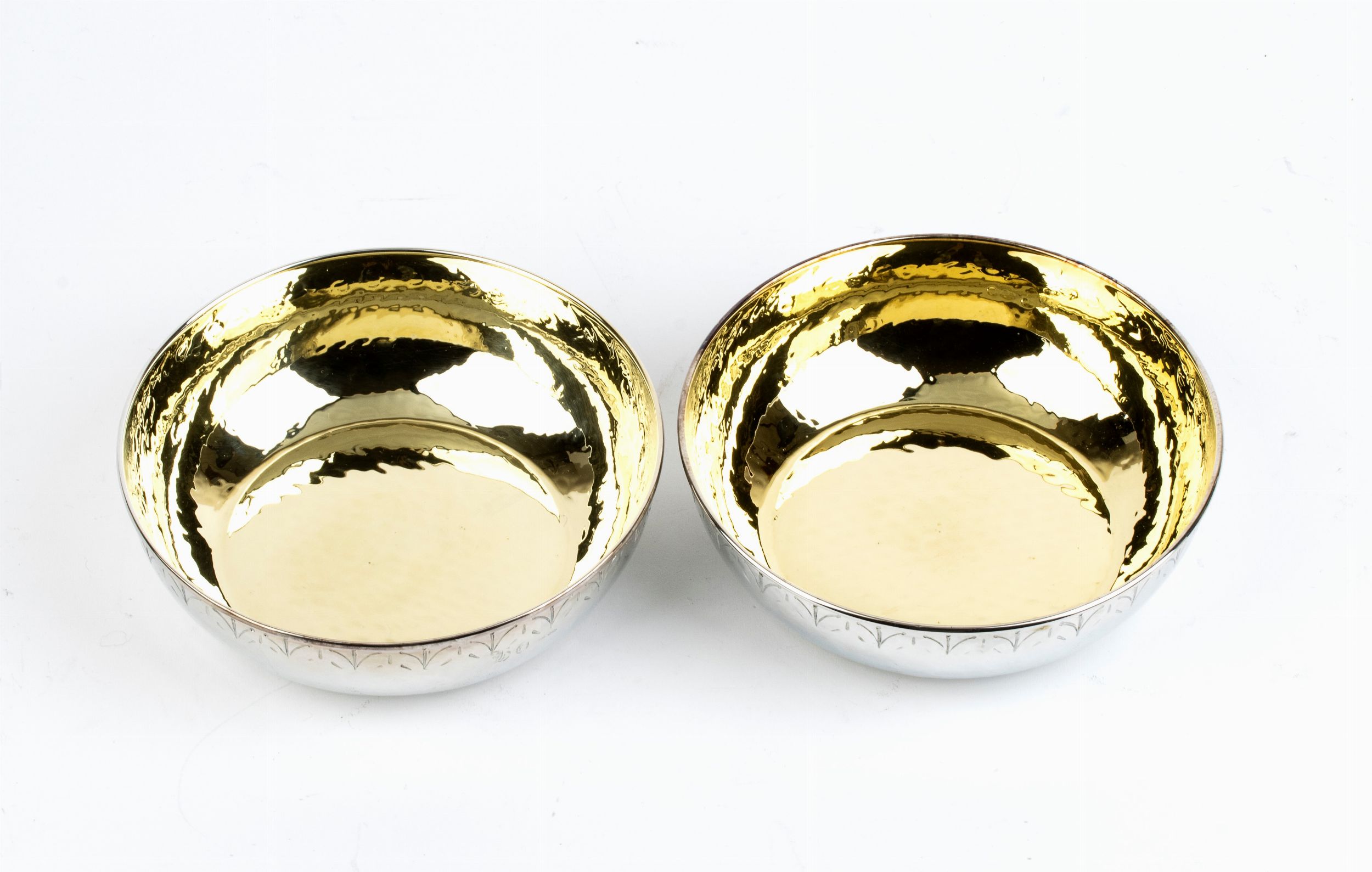 di forma circolare, interno vermeille, lavorazione a finta martellatura con motivi di foglie.