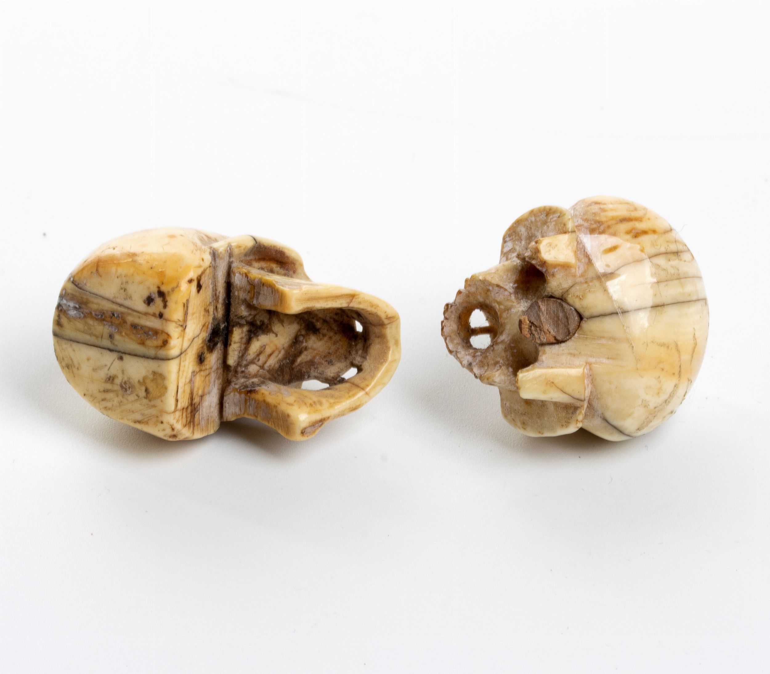 in avorio marino scolpito (Physeter Linnaeus, 1758 o Orcinus orca, Linnaeus, 1758).