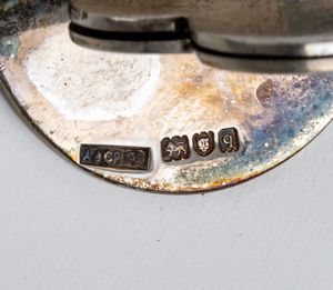 Argento 925/1000, serie completa di marchi Londra 1915-1916 e iniziali A & C Ltd, argentiere Asprey & Co Ltd.