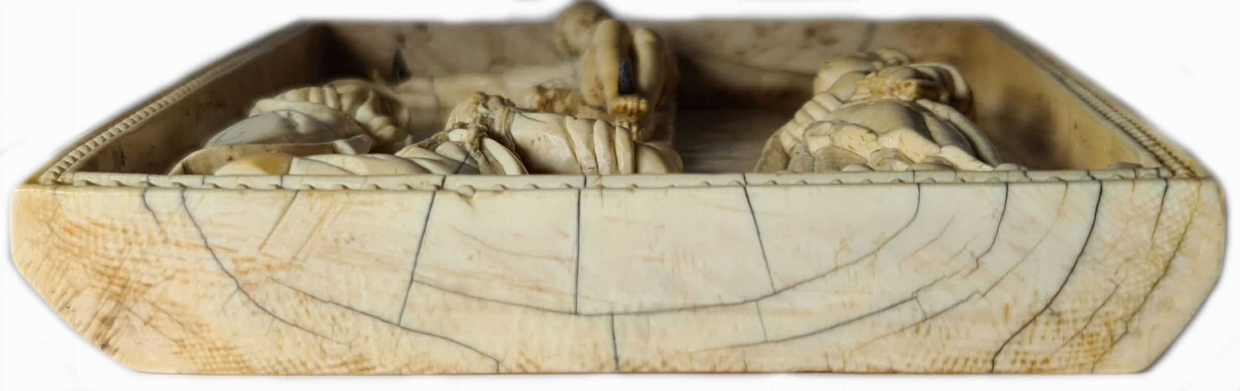 In avorio di elefante (Loxodonta africana Blumenbach, 1797 o Elephas maximus Linnaeus, 1758) finemente scolpito ad alto rilievo a raffigurare la Crocifissione di Cristo.