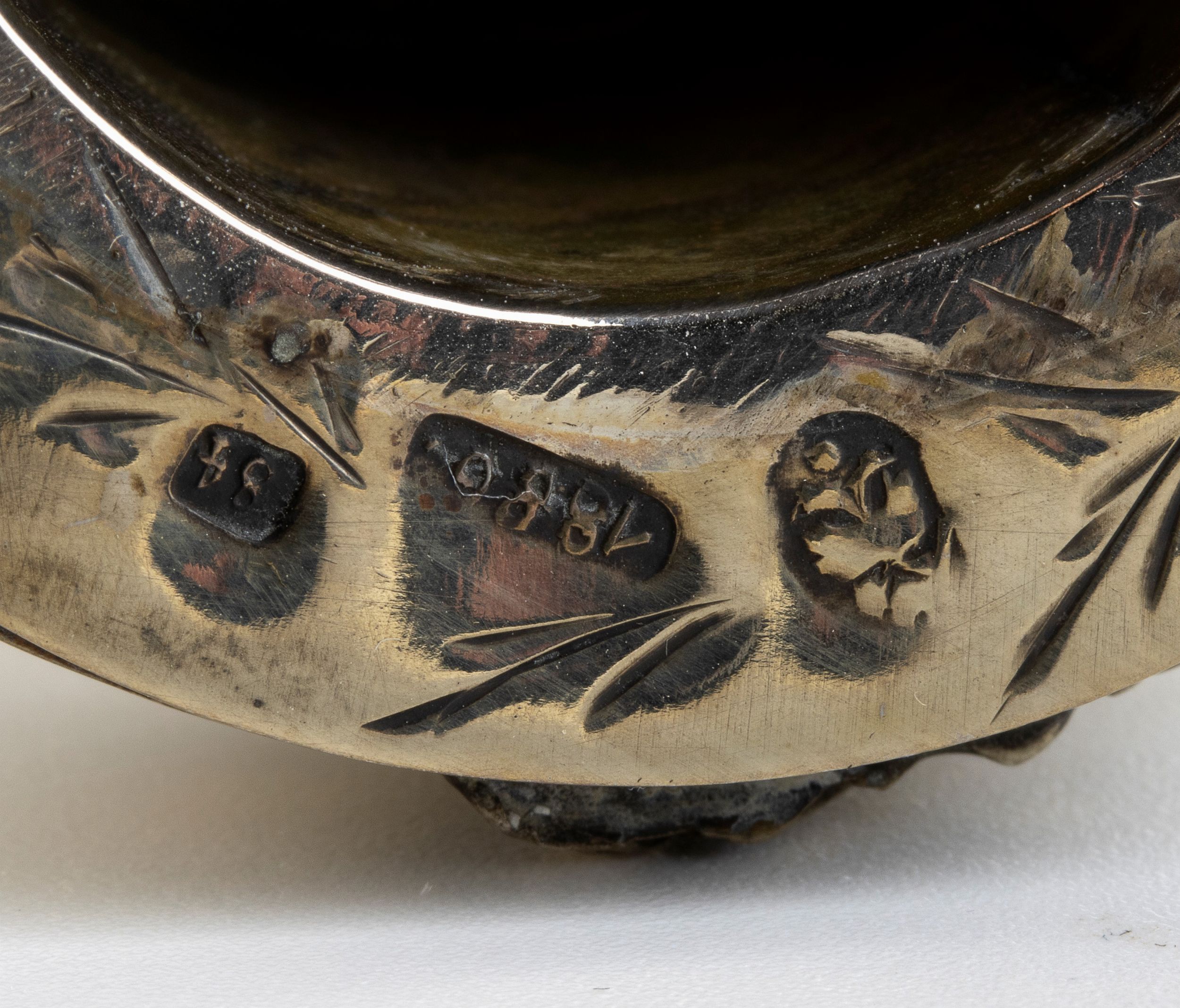 Punzonato con marchi apocrifi Russi del XIX secolo per l'argento al titolo di 84 zolotnik (875/1000).