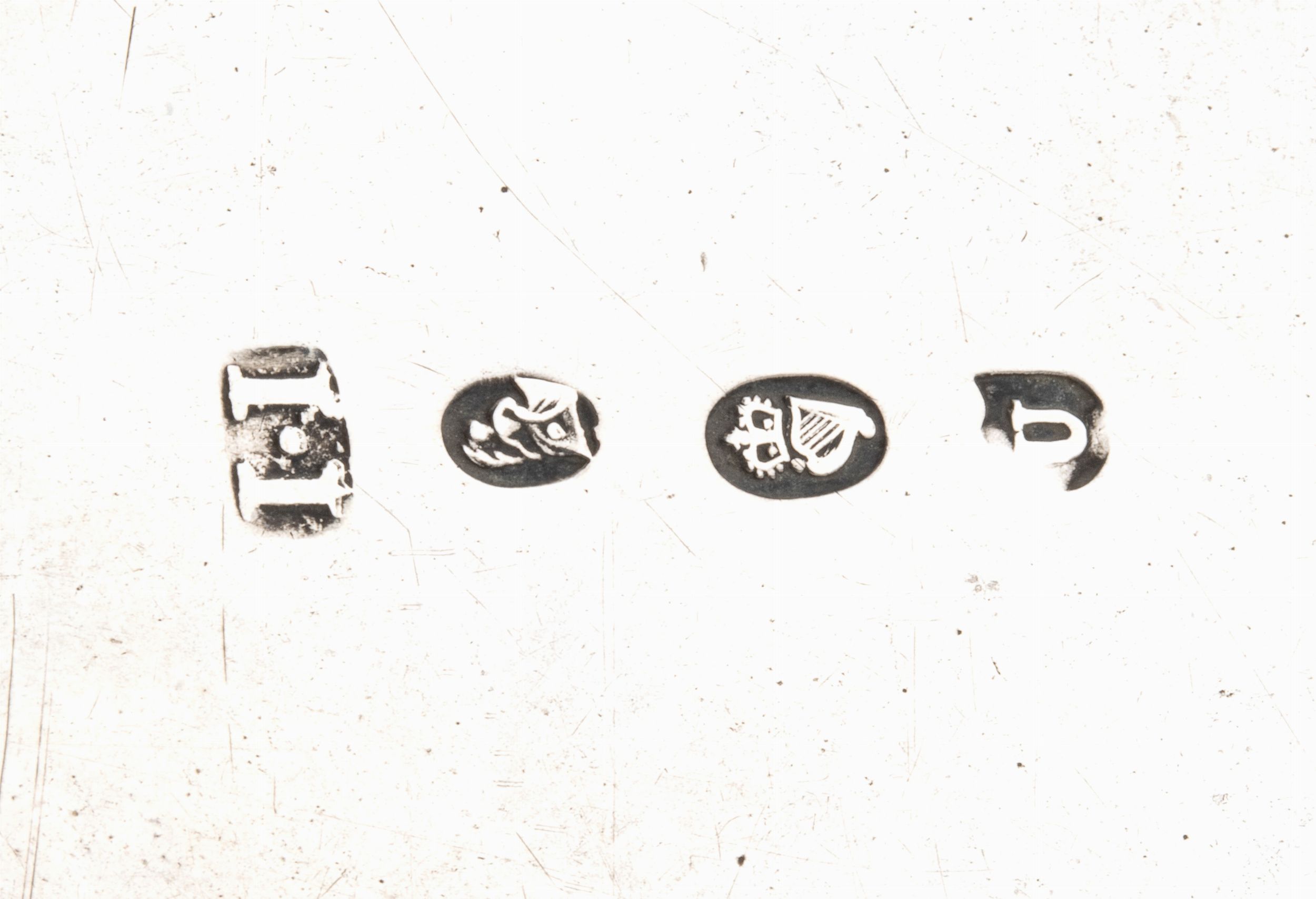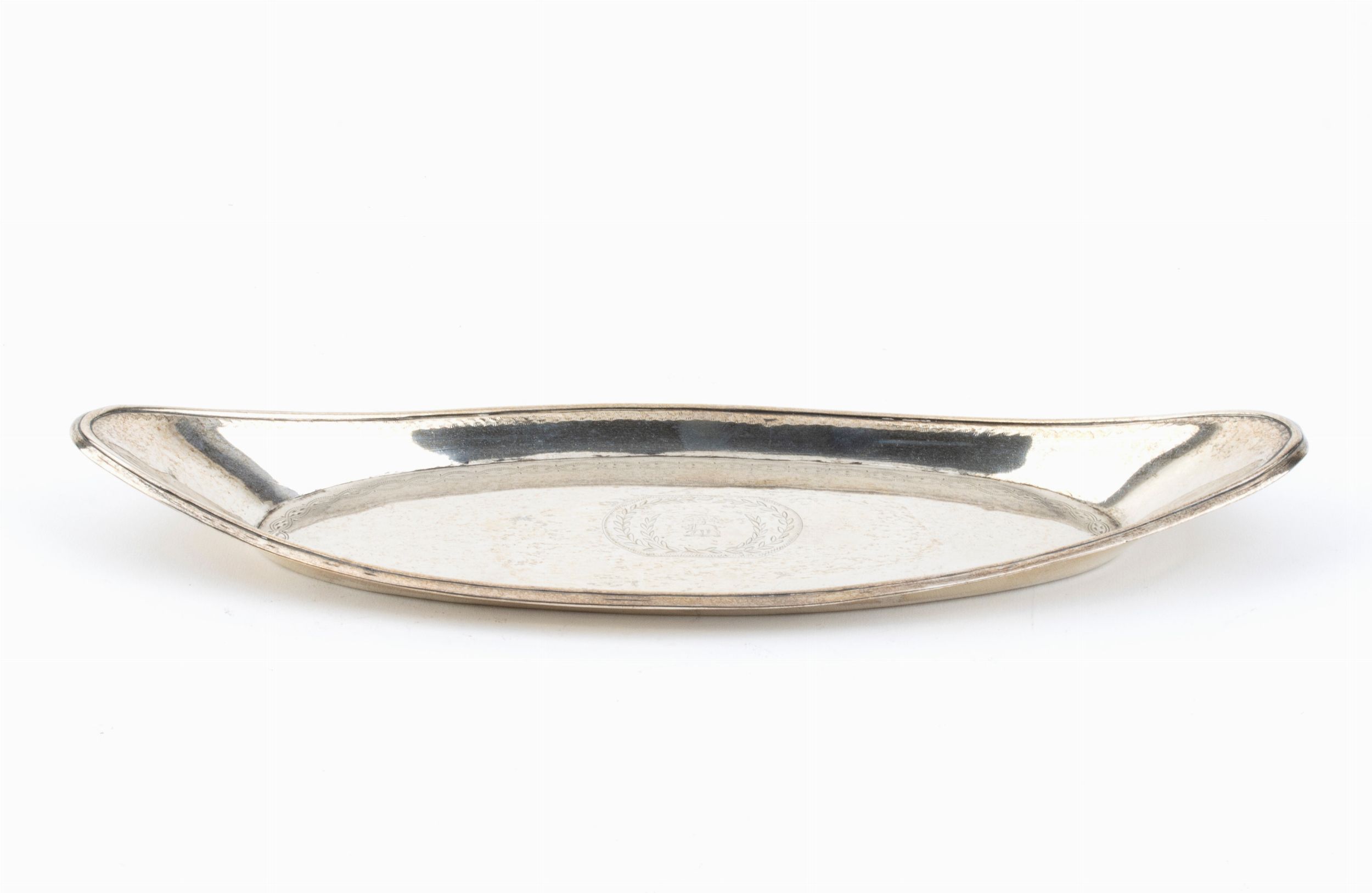 Lunghezza x larghezza: 25,5 x 9,8 cm. Peso 119 gr. Dublino 1792-1793 di forma ovale inciso a taglio luce. Argento 925/1000, serie completa di marchi Dublino 1792-1793, argentiere Joseph Jackson.