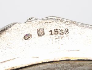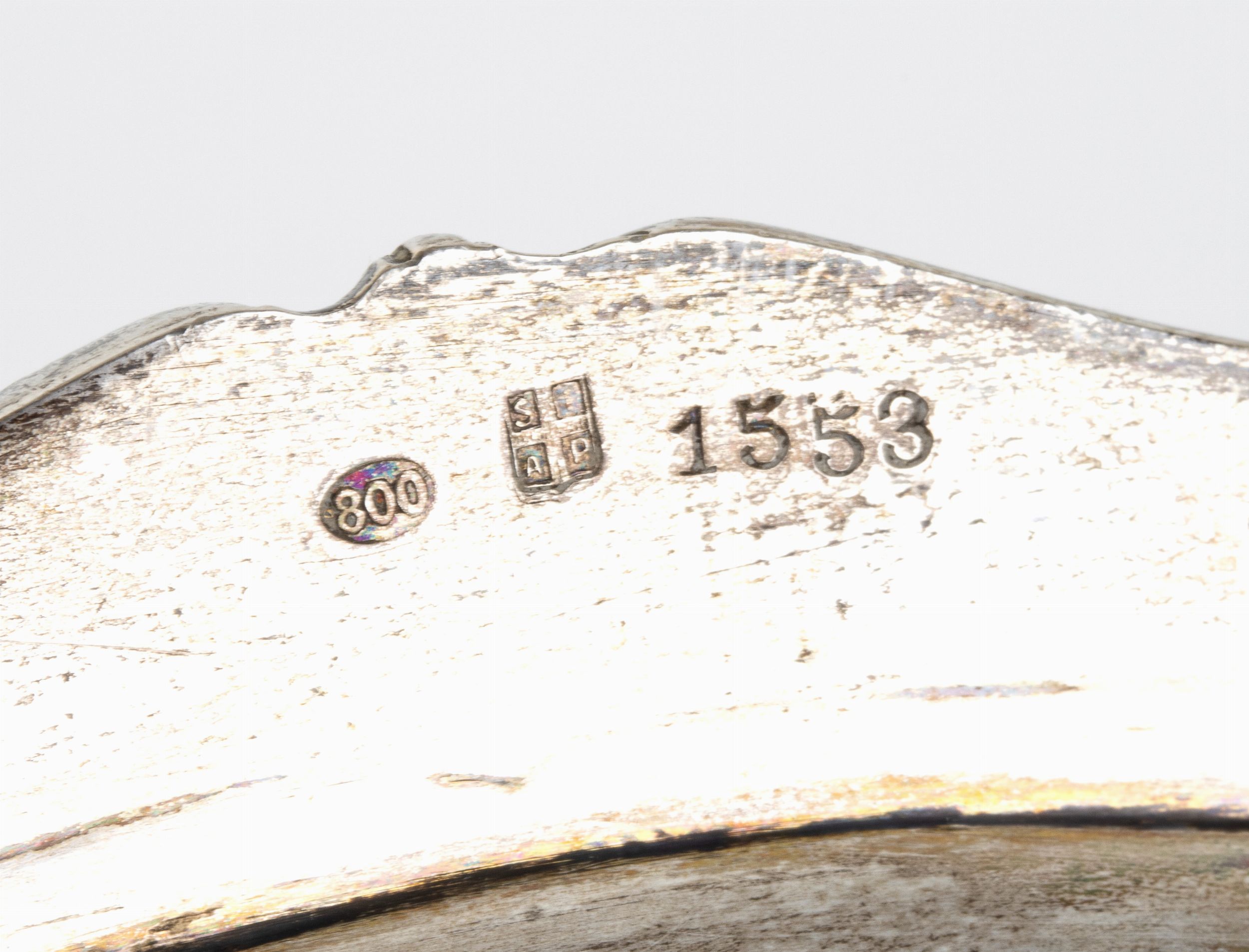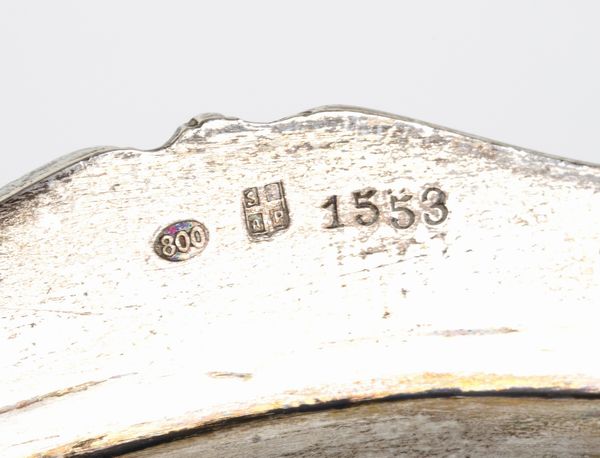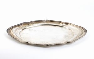 di forma ovale con bordi sagomati. Argento 800/1000, punzonato 800 - SIAP, argentiere S.I.A.P. Alessandria.Stato di conservazione: **** buono, minori segni d'uso commensurati all'uso nel tempo.