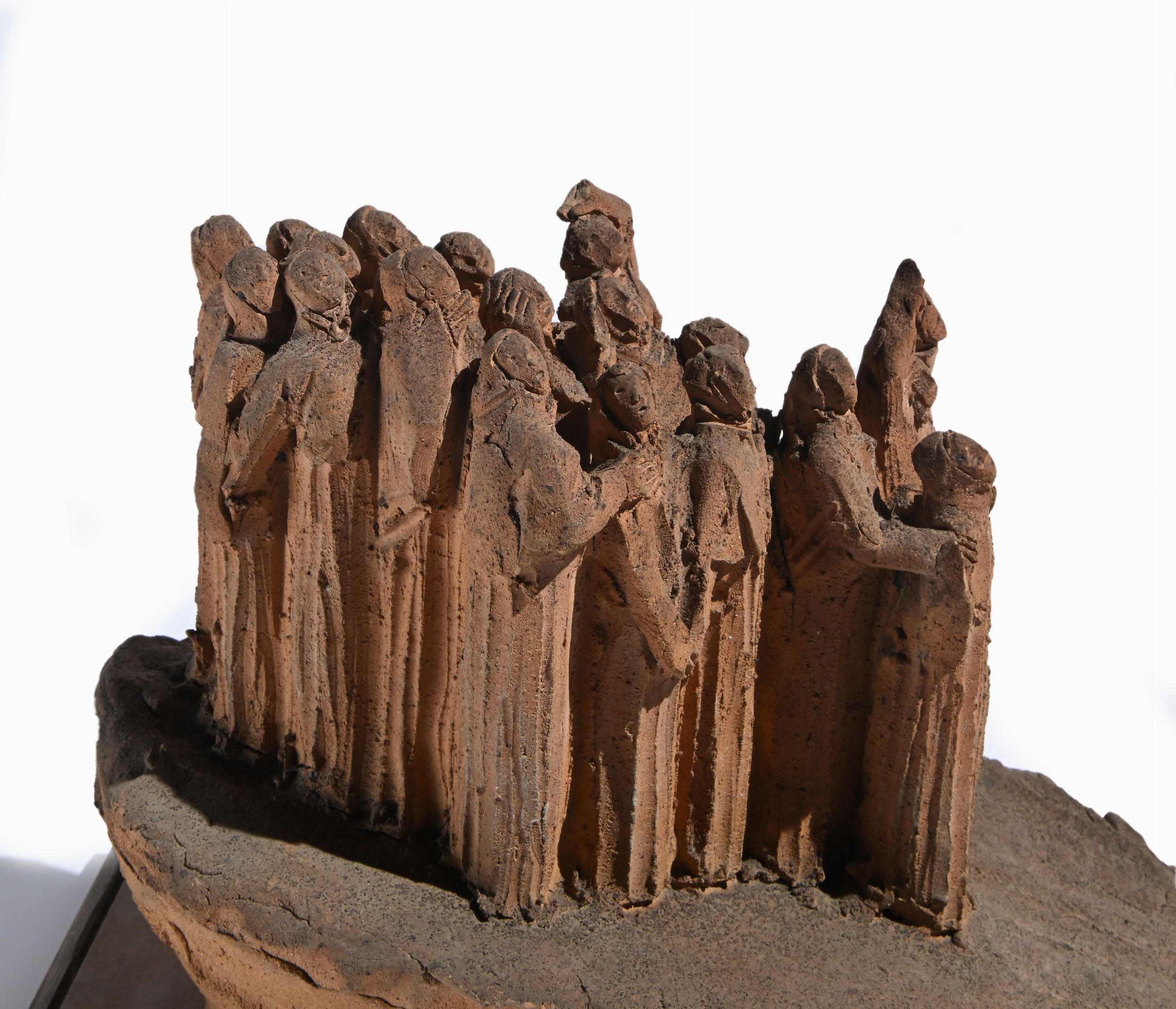 La soluzione ricorda da vicino altre composizioni come il gruppo dei Briganti (262) proposto in più versioni, terracotta e maiolica, e il gruppo delle Collegiali (Catalogo ragionato n. 267), ideate in una composizione circolare con vuoto al centro, tutte opere risalenti ai primi anni ’30; sempre al 1932 circa risale infine la terracotta in esemplare unico intitolata Tragedia greca (Catalogo ragionato n. 317) probabilmente collegata alla presente scultura se non altro per la tematica teatrale.