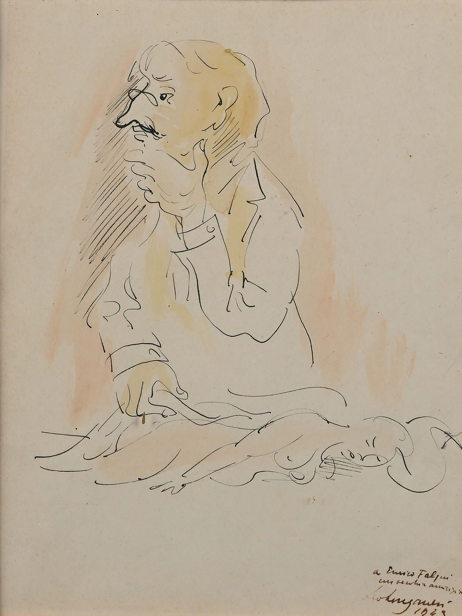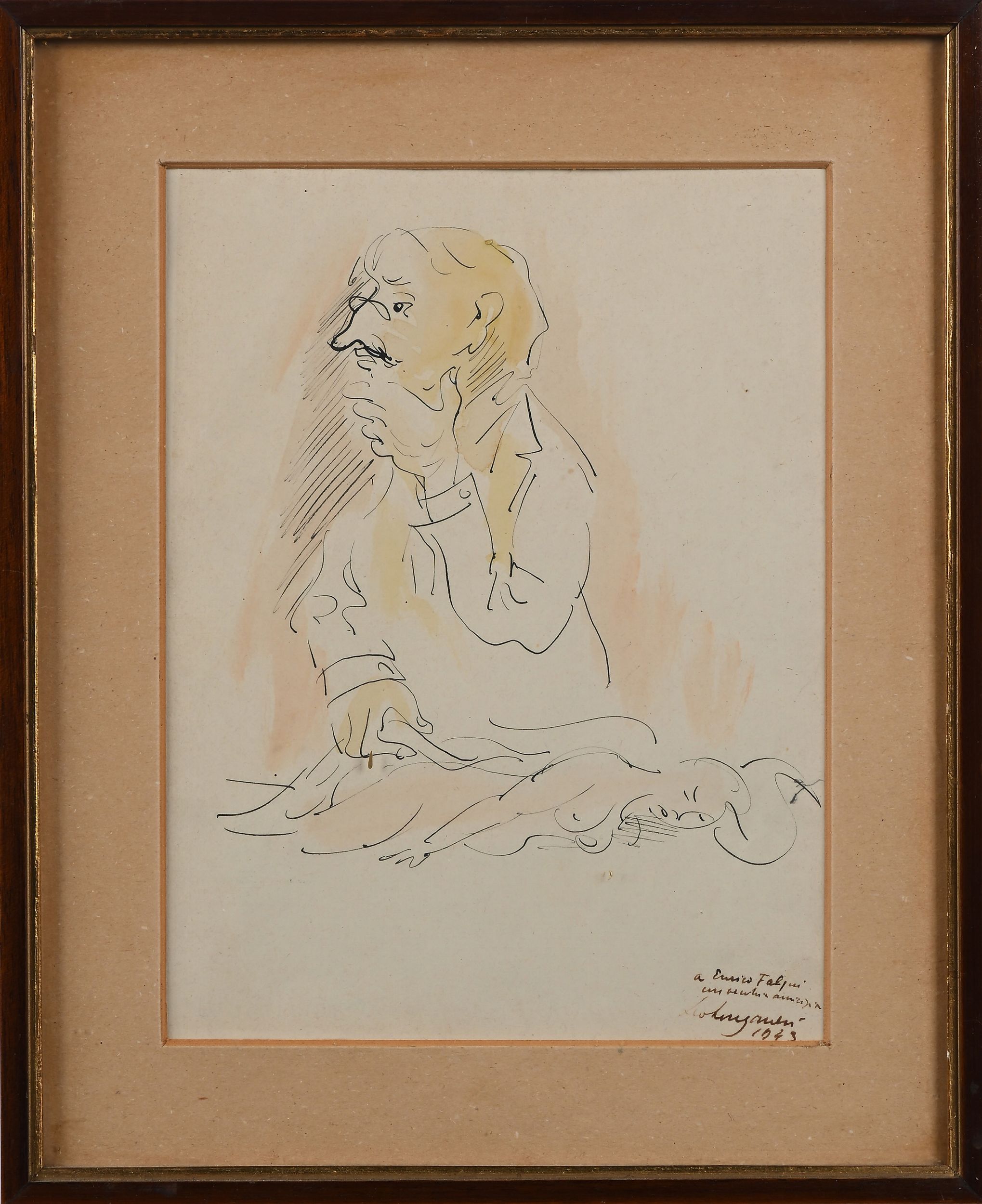 1943 Al verso reca titolo Il clinico. Firma, data e dedica in basso a destra A Enrico Falqui, con amicizia, Leo Longanesi, 1943.