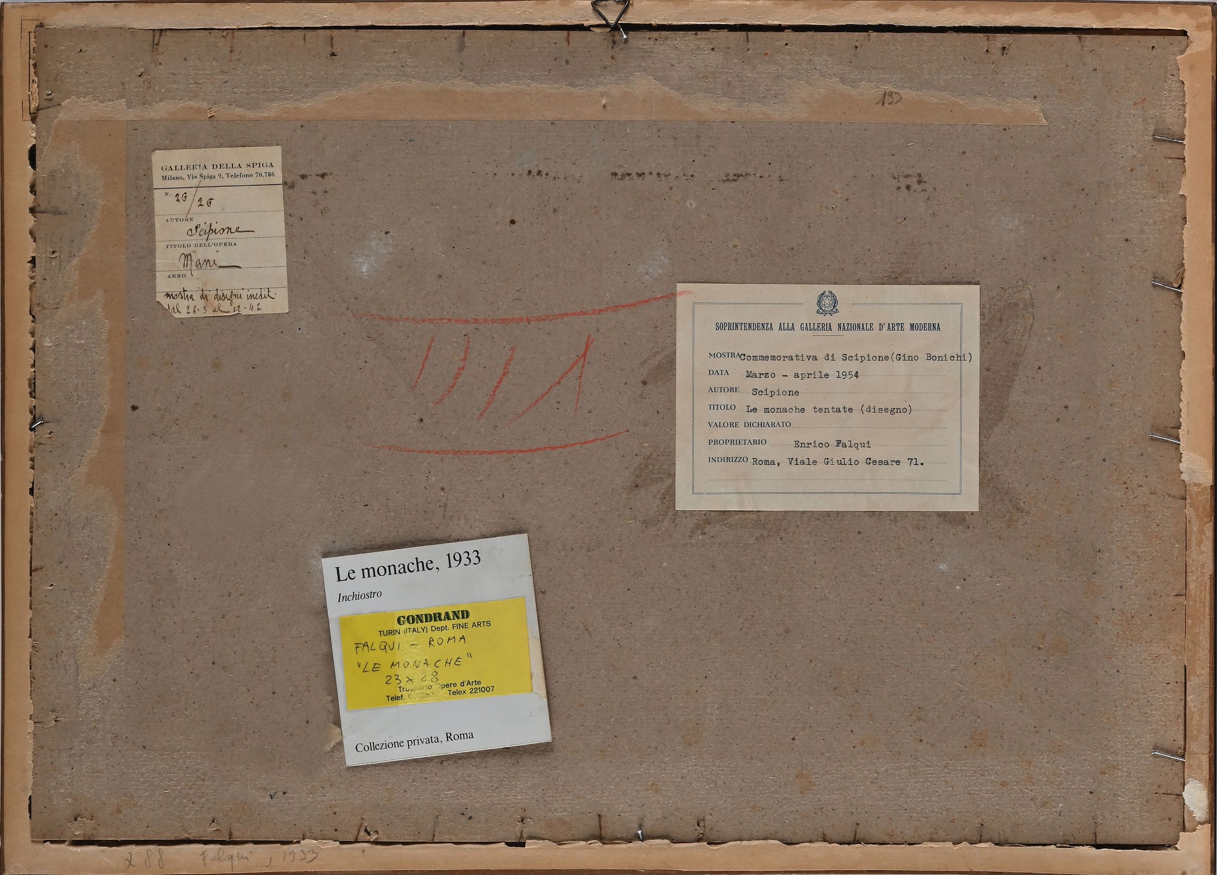 1933 Sul retro reca etichetta della Sovrintendenza e Etichetta della Galleria della Spiga