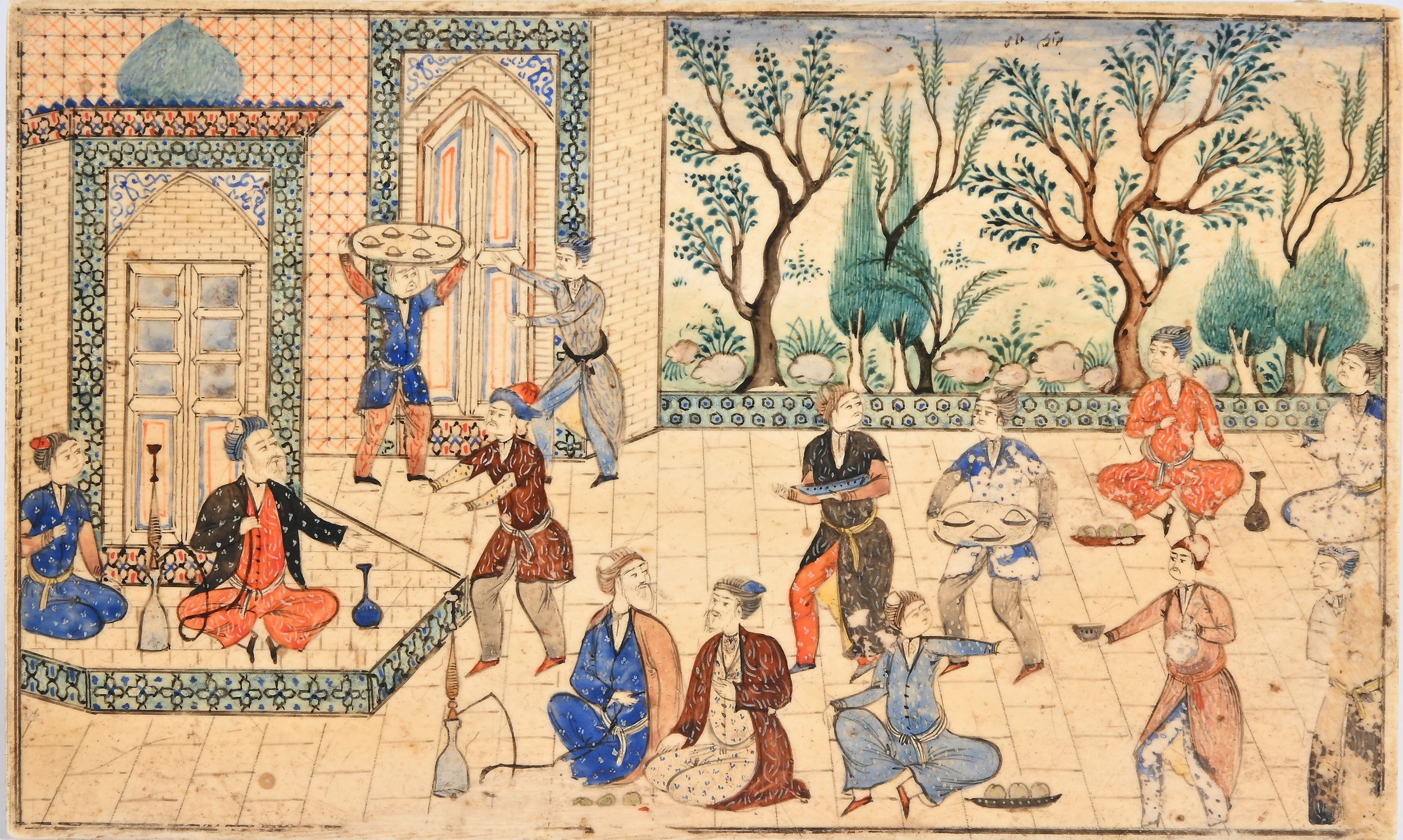 Miniatura con figure di orientali dipinte in policromia, Iran, dinastia Qajar, XIX [..]