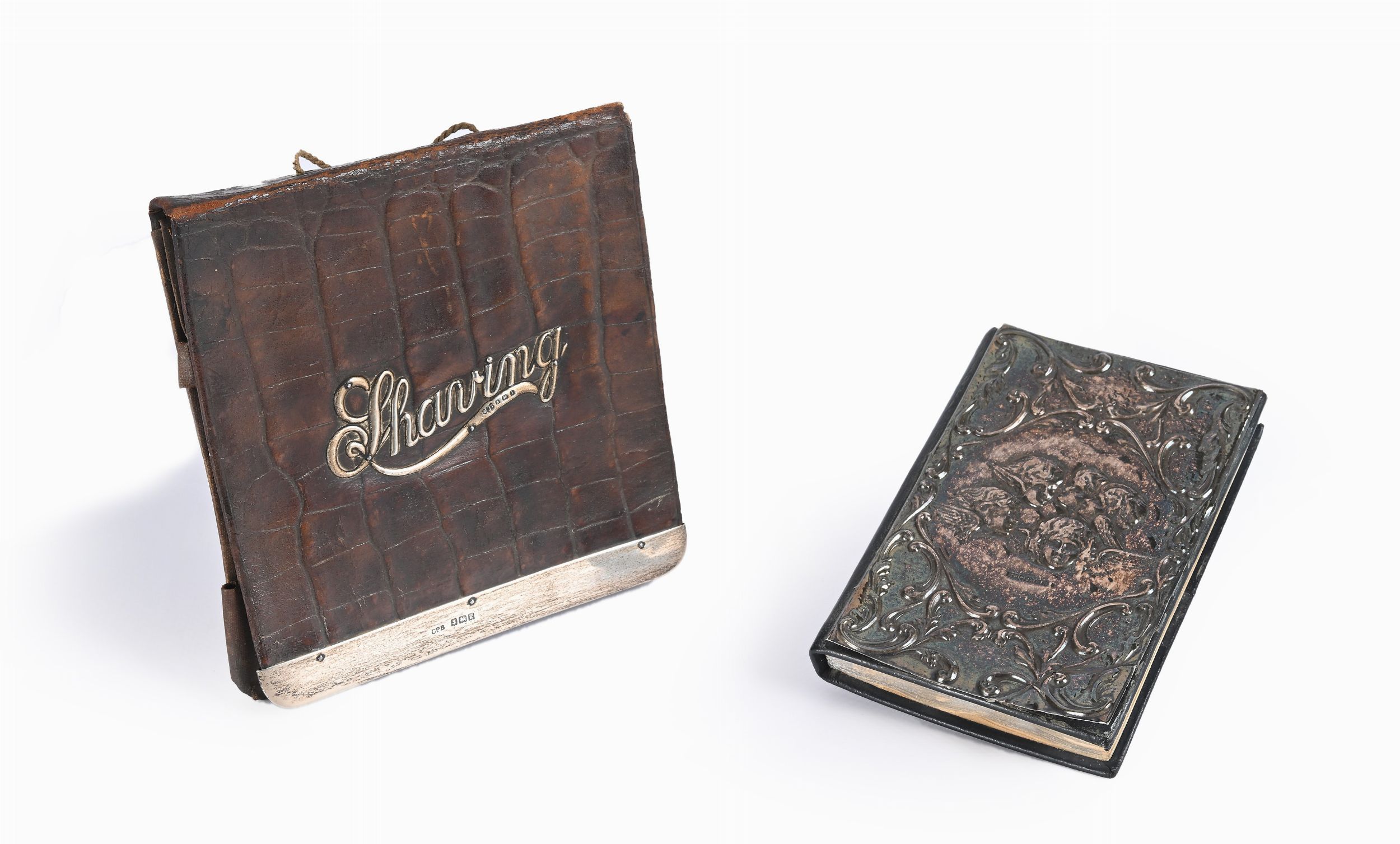 Rubrica rivestita in lamina d'argento con cherubini e Shaving, Birmingham, argentiere [..]