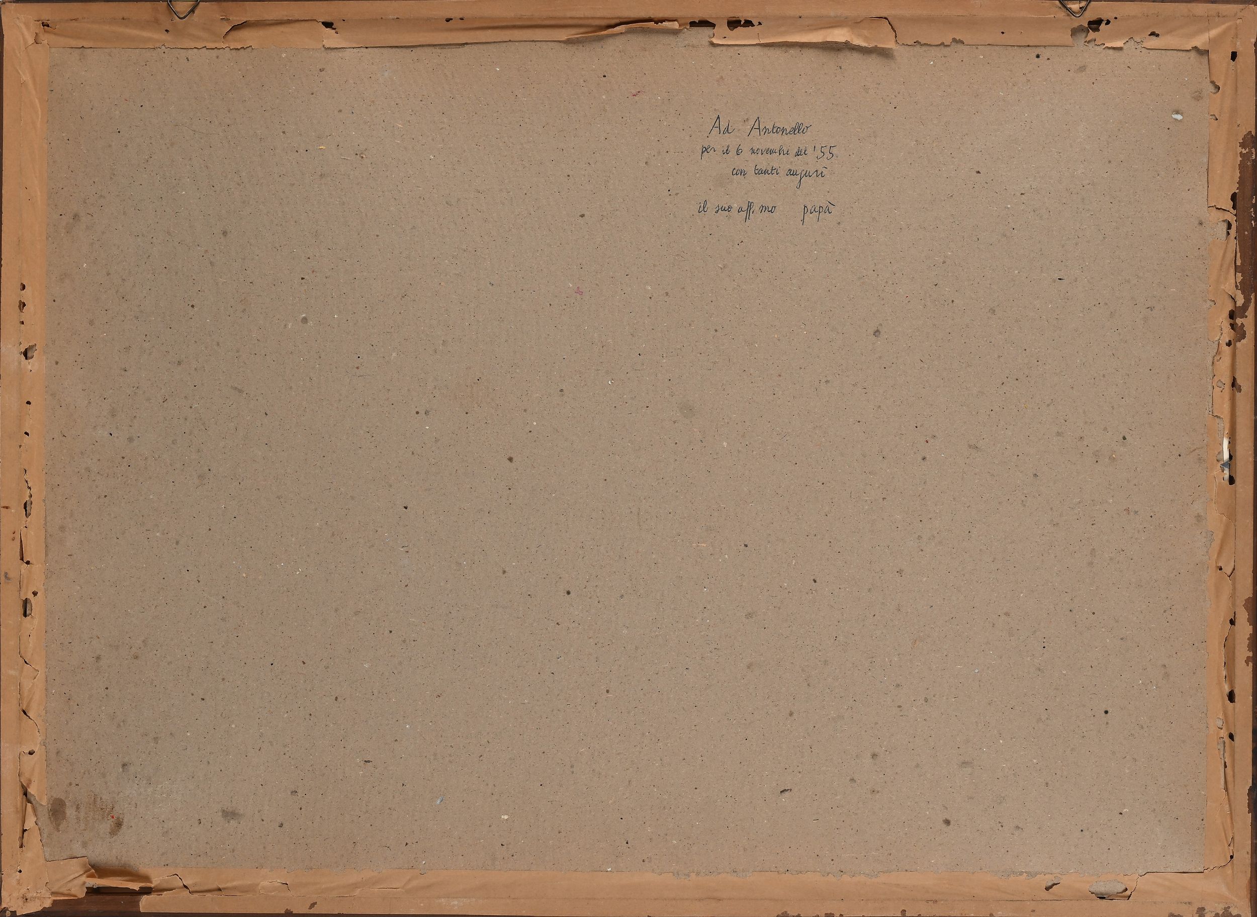 Firma e numerazione Gentilini 48/100. Al verso reca dedica di Enrico per Antonello Falqui Ad Antonello, per il 6 novembre del '55, con tanti auguri, il suo aff.mo papŕ.