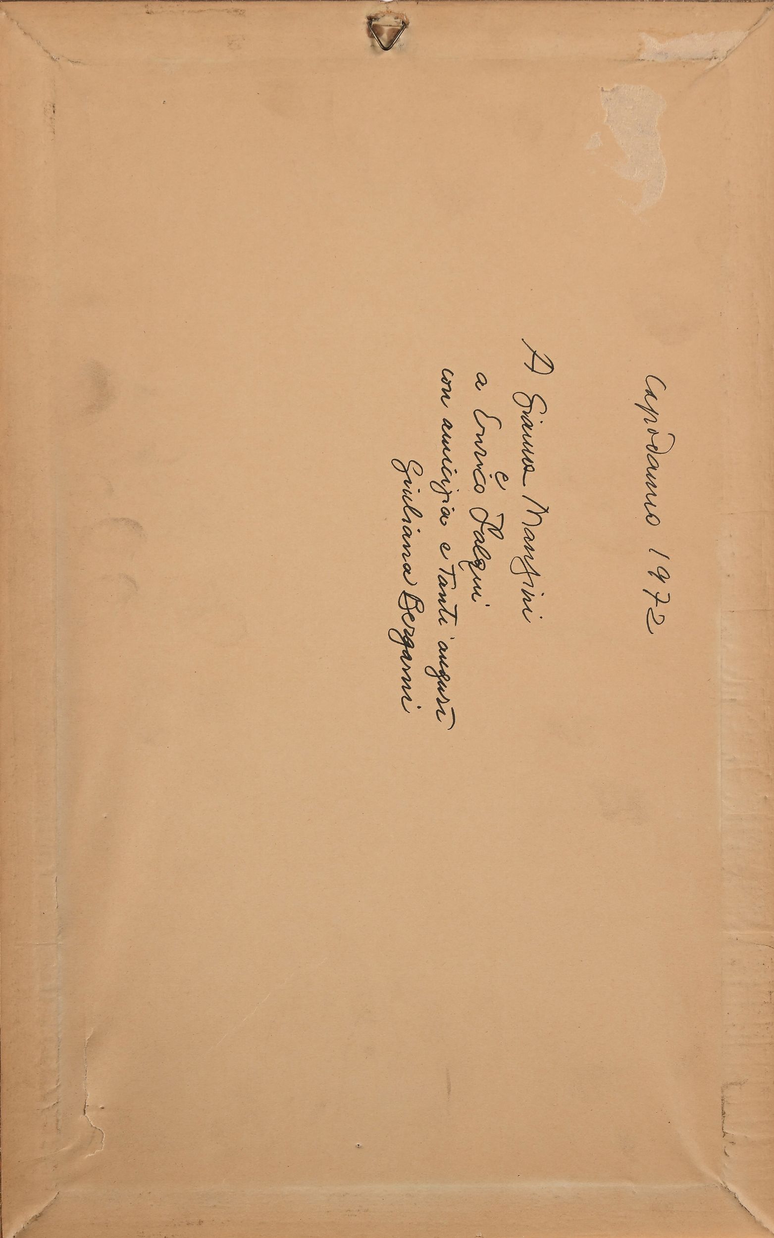 1972 Firma in basso a sinistra G. Bergami. Al verso dedica a Gianna Manzini e Enrico Falqui e data 1972.