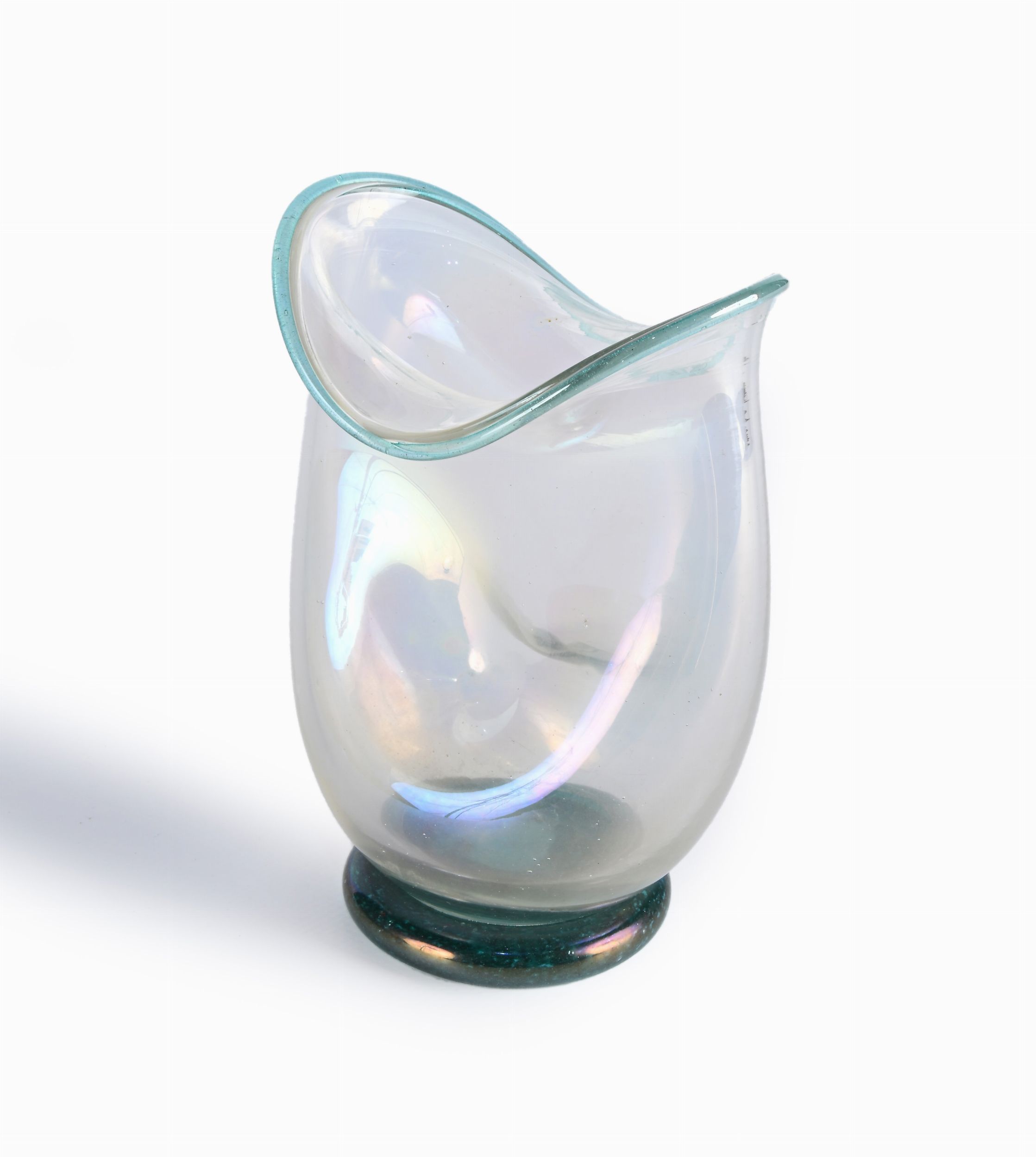 Vaso in vetro soffiato incolore iridato