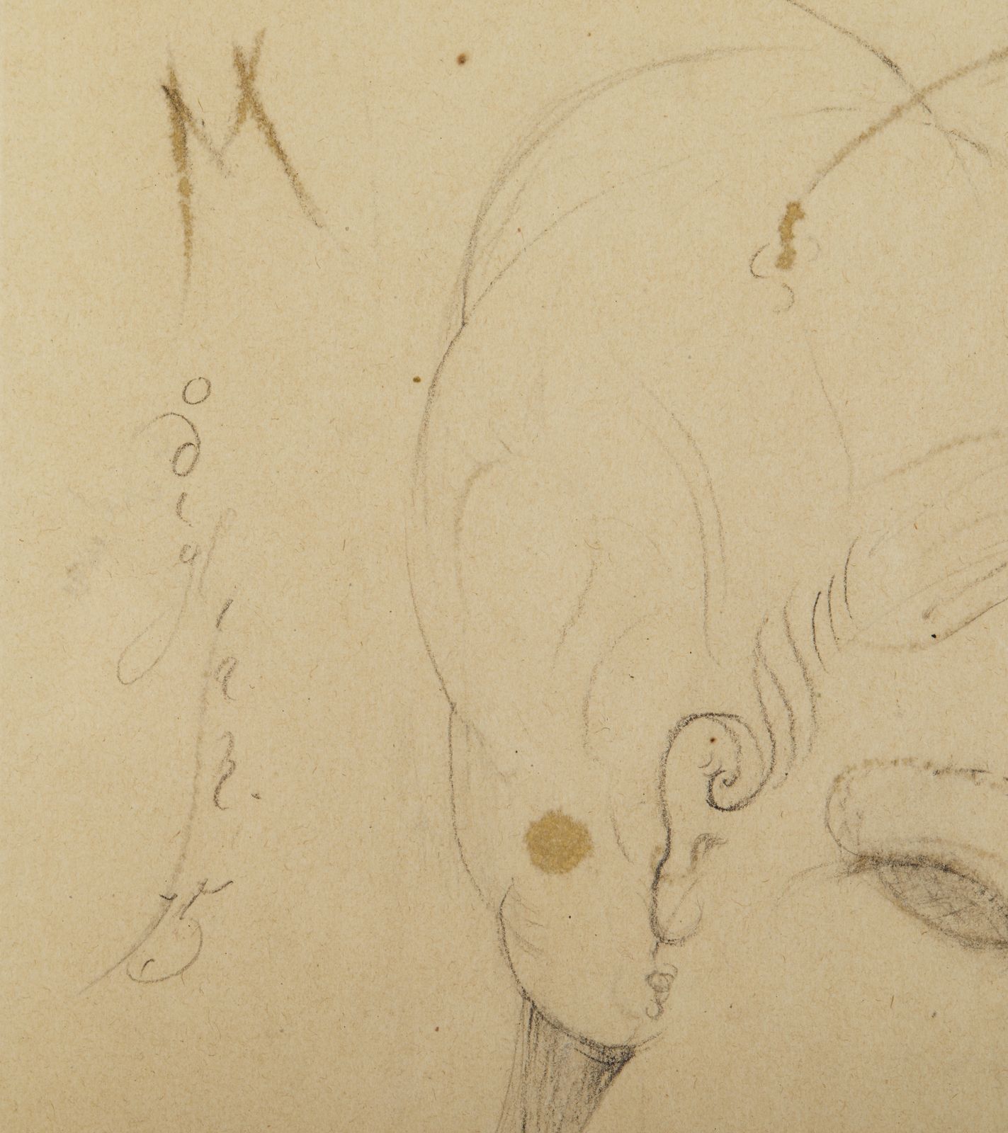 firmasul retro: etichetta Galleria d'Arte Fatamorgana, PescaraL'opera č accompagnata da autentica degli Archives Legales Amedeo Modigliani, Paris - Roma a cura di Christian ParisotPROVENIENZALčopold Zborowski, ParisGalleria d'Arte Fatamorgana, PescaraCollezione privata, AquilaBIBLIOGRAFIAC. Parisot, Catalogue Raisonné. Scultures, peintures, dessins, Firenze 2012, tomo V, p. 210, n. 206/15