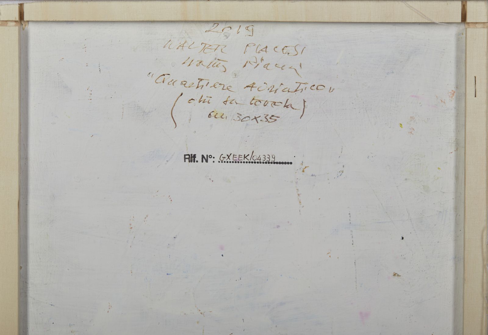 firmasul retro: firma, data e titoloL'opera è accompagnata da autentica dell'artista su fotografia con etichetta Studio d'arte edizioni Spinello, Pesaro - UrbinoPROVENIENZAStudio d'arte edizioni Spinello, Pesaro - Urbino