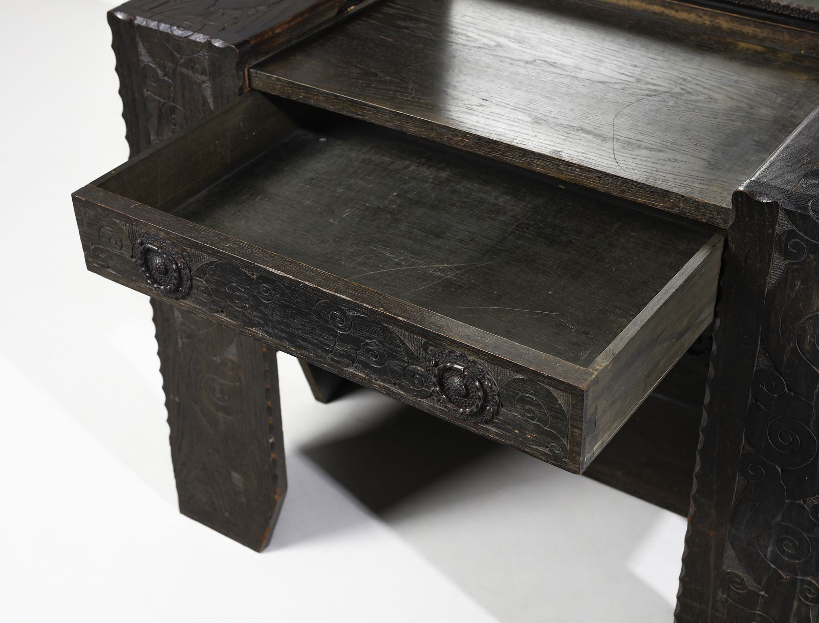 Inizi anni Venti.Dimensioni: toeletta 135 x 103 x 46 cm. sgabello 45 x 38 x 38 cmBibliografia: G. Gramigna, F. Irace (a cura di), Osvaldo Borsani, Leonardo - De Luca Edizioni, Roma 1992, p. 28