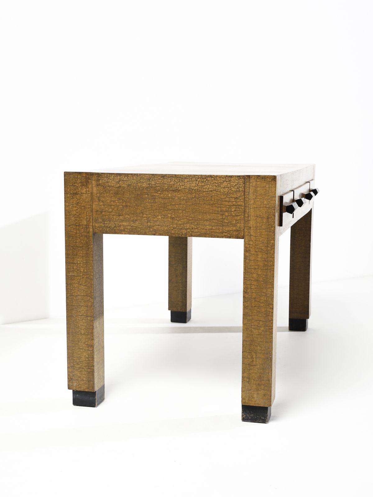 Dimensioni: sedia 80,5 x 45 x 45 cm. scrivania 80 x 140 x 70 cmBibliografia (sedia): I. De Guttry, M. P. Maino, Il mobile Dèco italiano 1920-1940, Laterza, Bari 1988 p. 189. Domus n. 839, Luglio 2001, p. 12