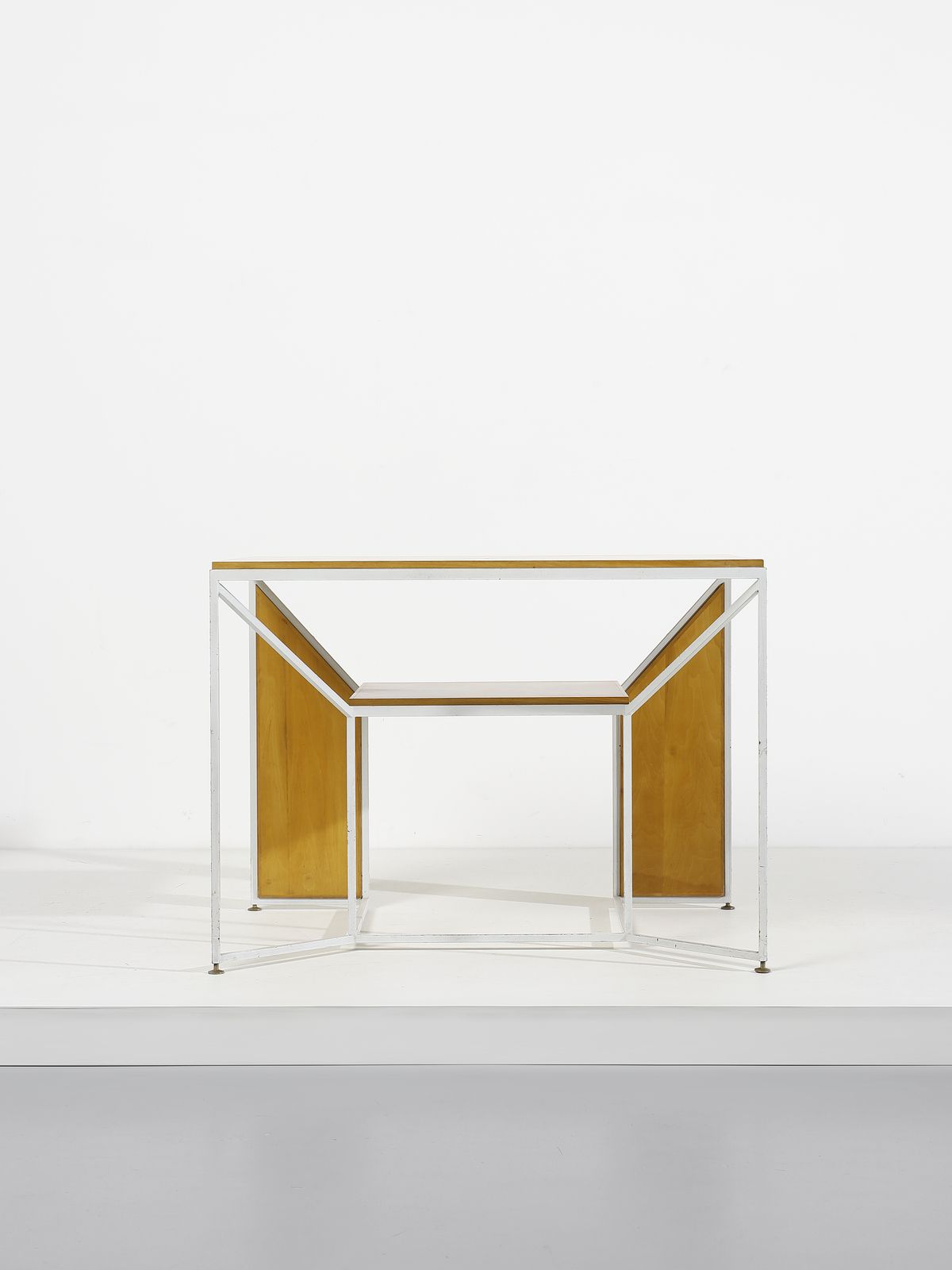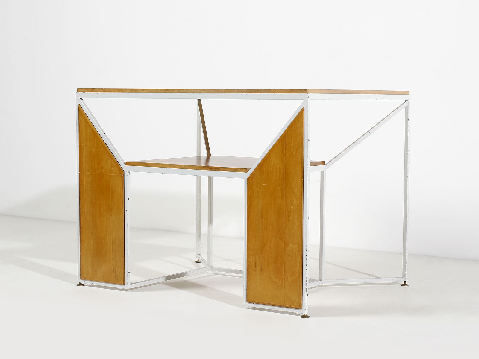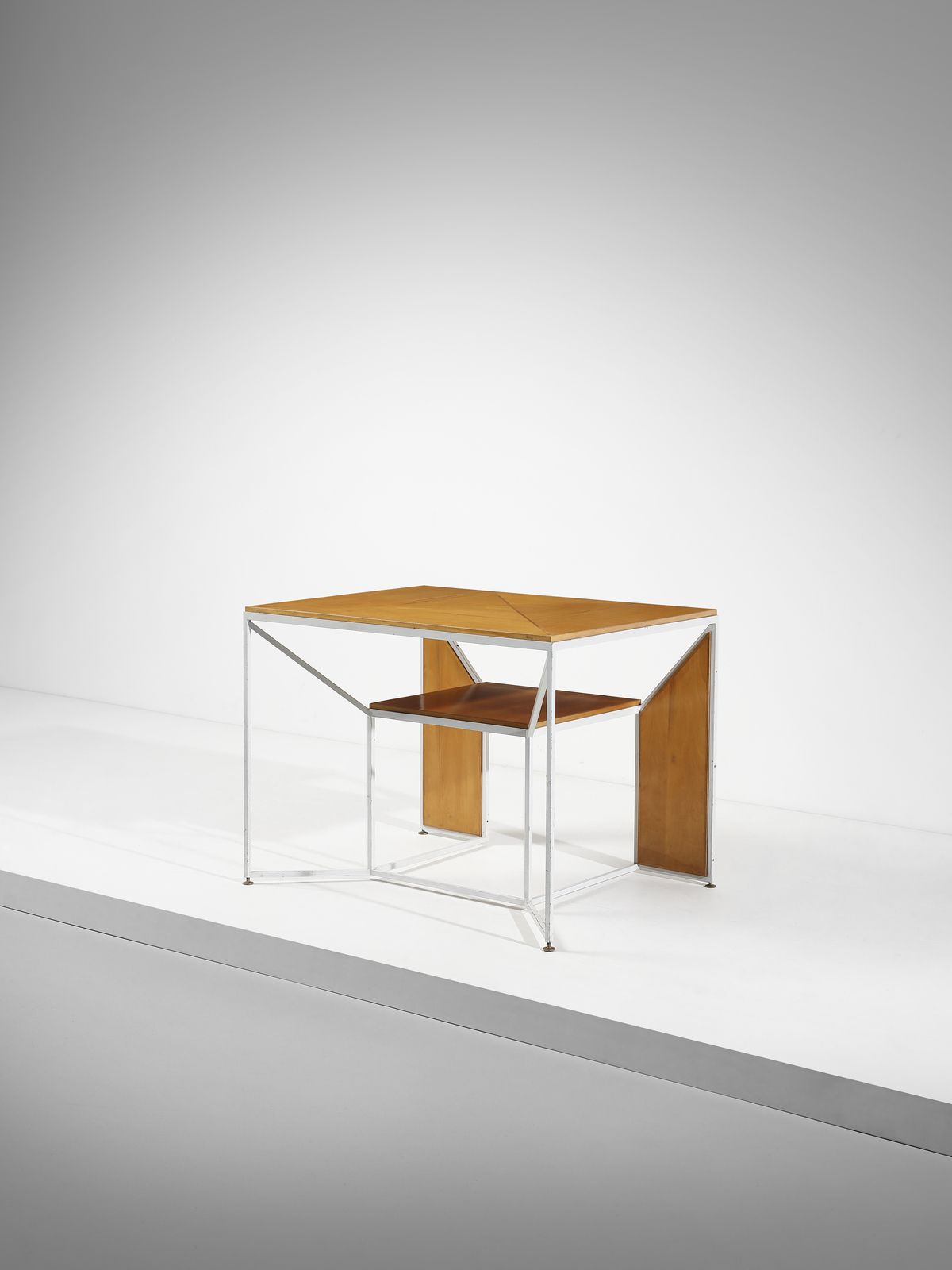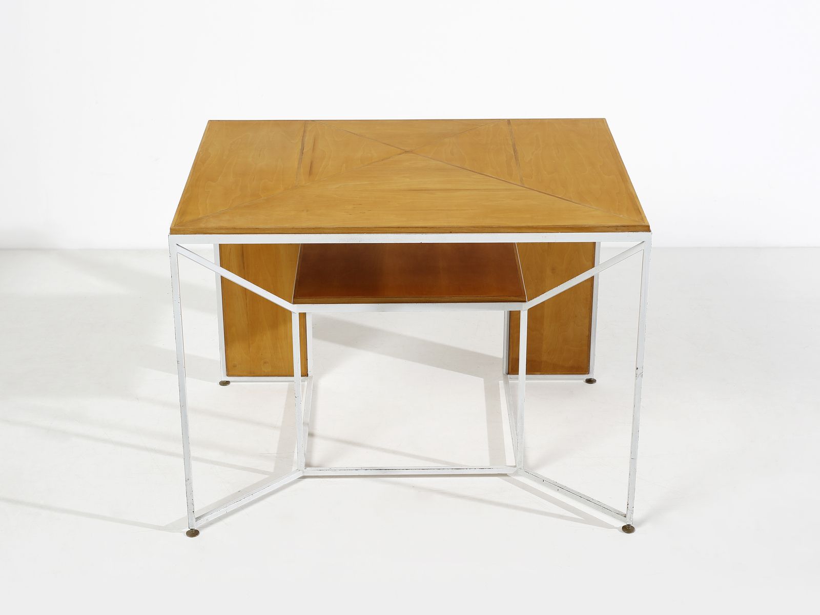 Provenienza: Villa del Cardinale Chigi, AricciaLa scrivania è una delle due scrivanie progettate su misura dallo Studio G.R.A.U. per il restauro della Villa del Cardinale Chigi ad Ariccia, nel 1967.