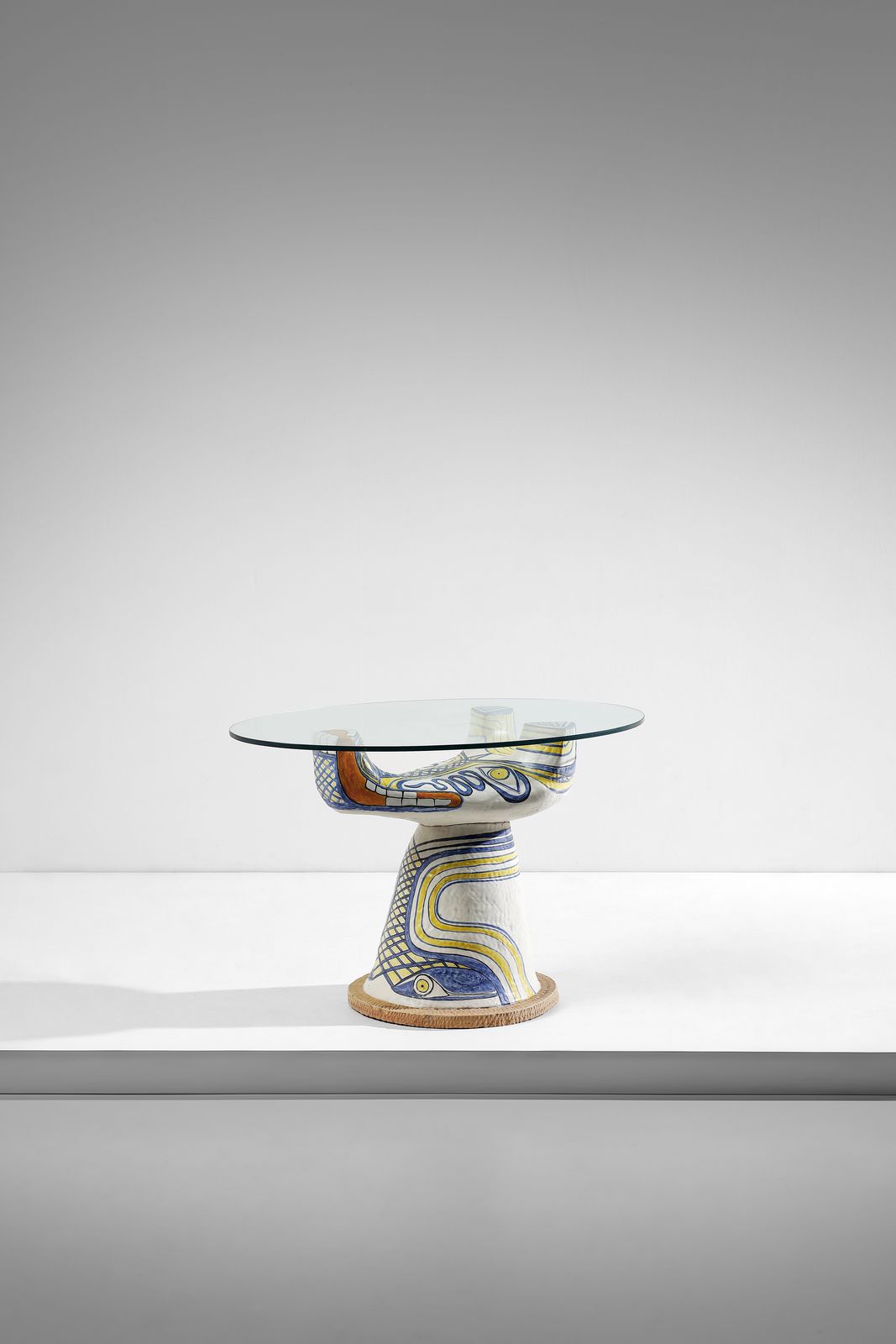 Tavolo da salotto con base scultorea a soggetto zoomorfo, Roma