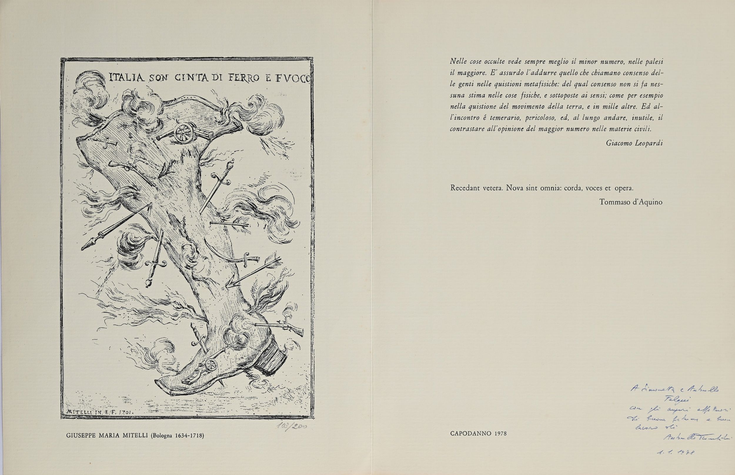 Biglietto di auguri per il Capodanno 1978 con incisione da Giuseppe Maria Mitell [..]