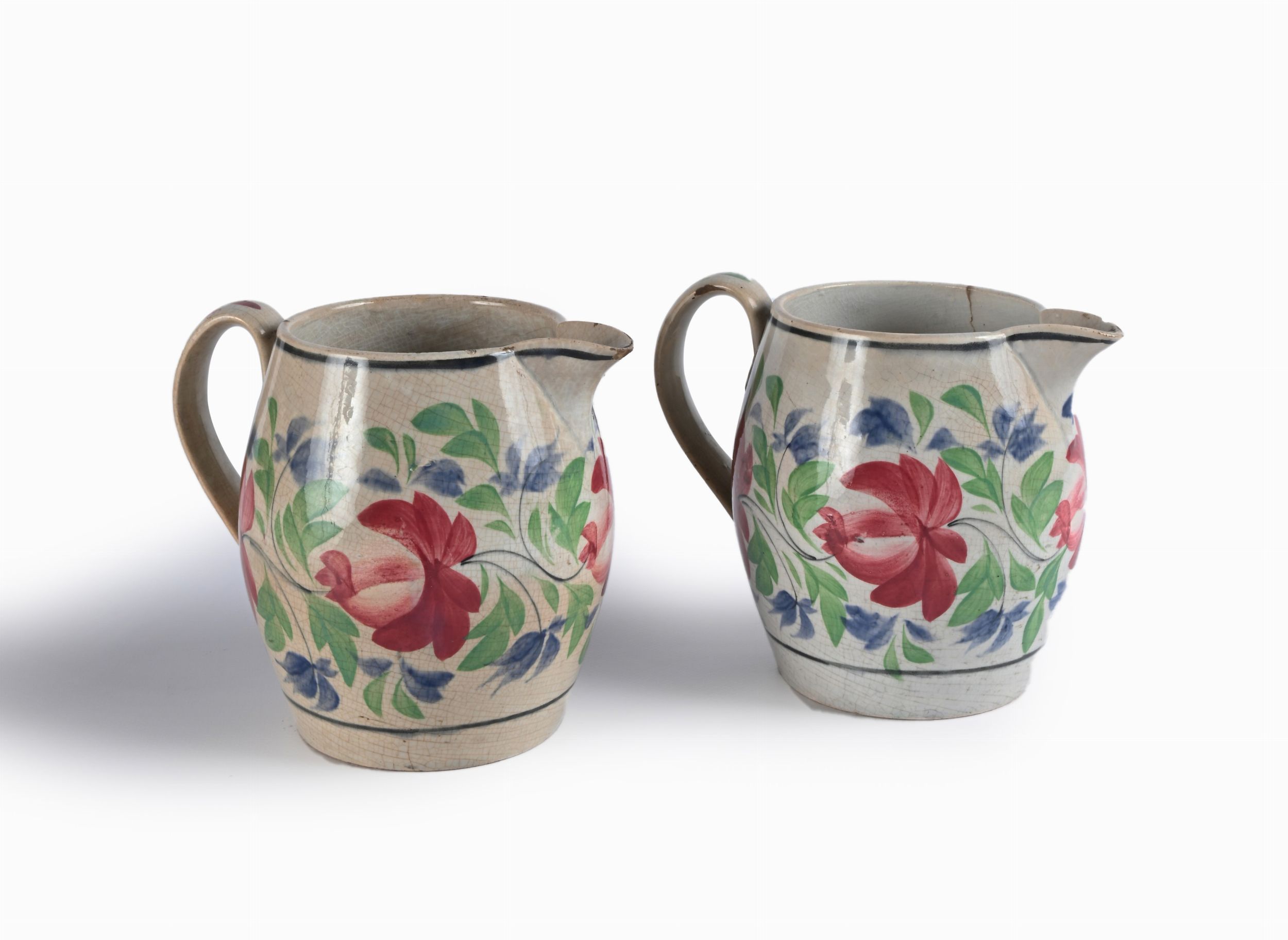 Coppia di brocche in ceramica policroma, fine del XIX secolo