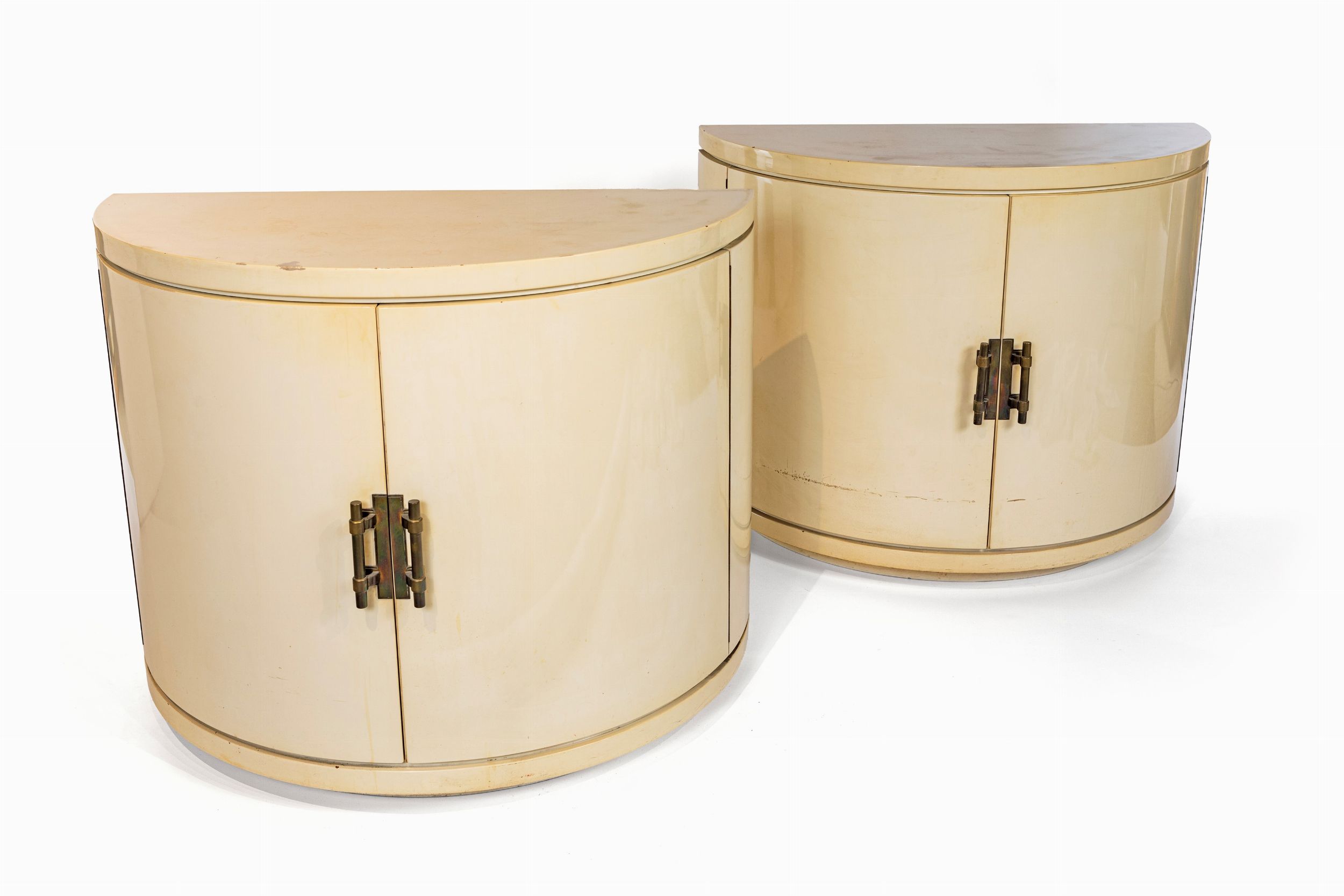 Coppia di credenze a mezza luna in legno laccato avorio, Anni Trenta