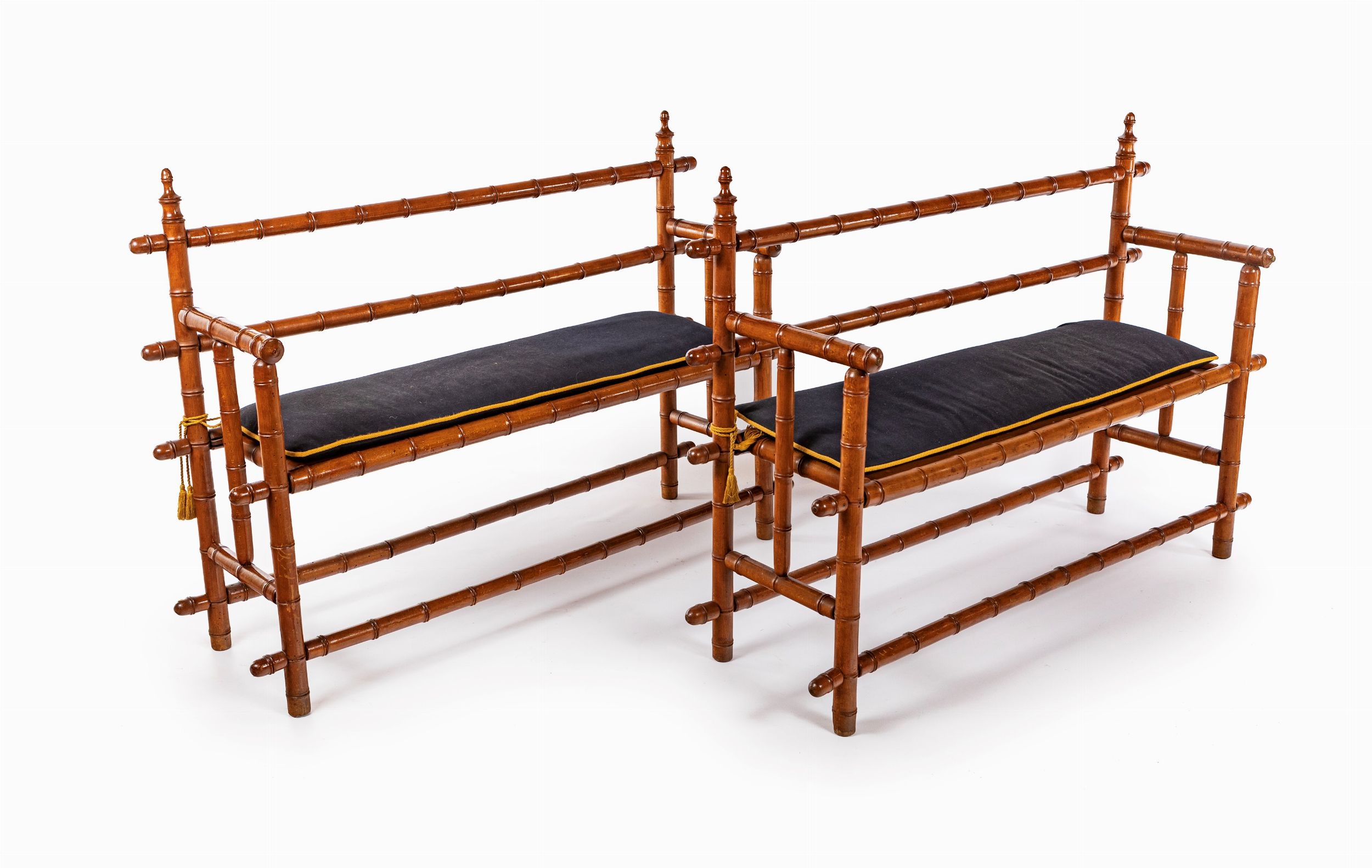 Coppia di divanetti di gusto coloniale vittoriano, prima metà del XX secolo
