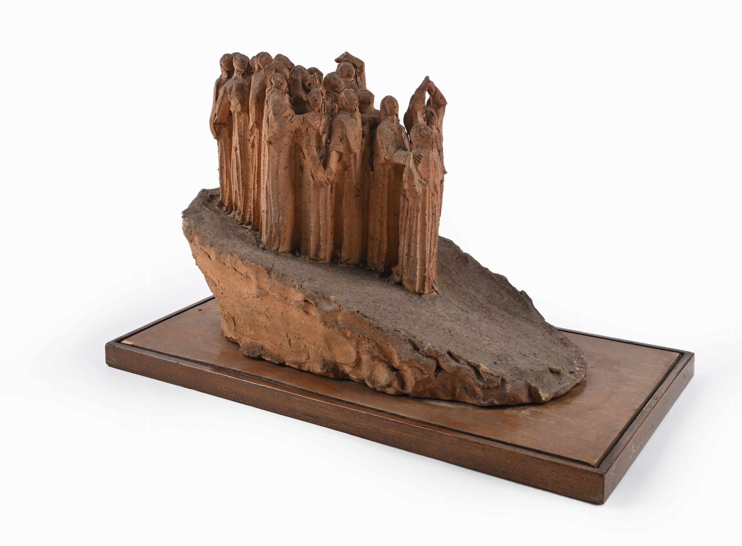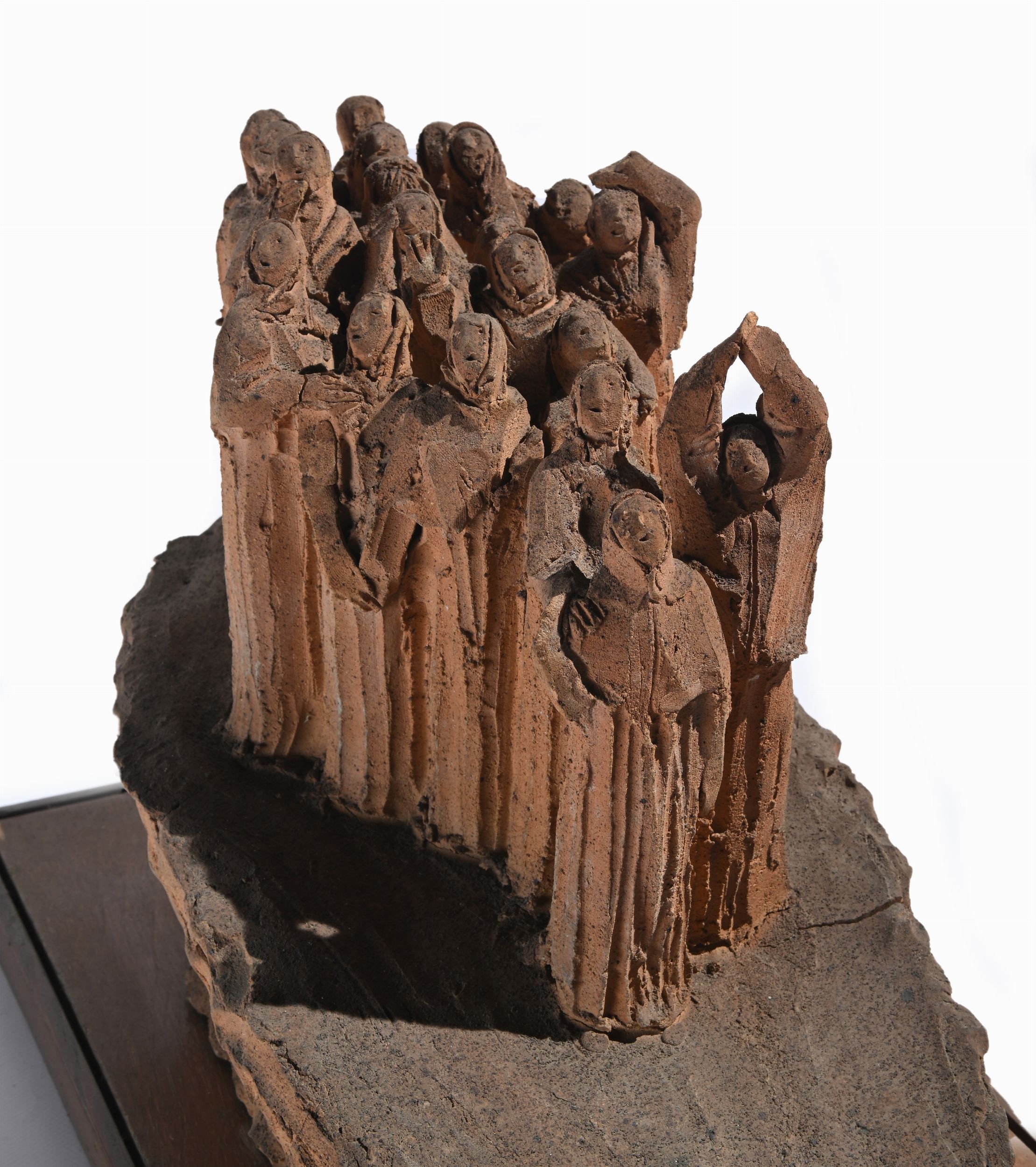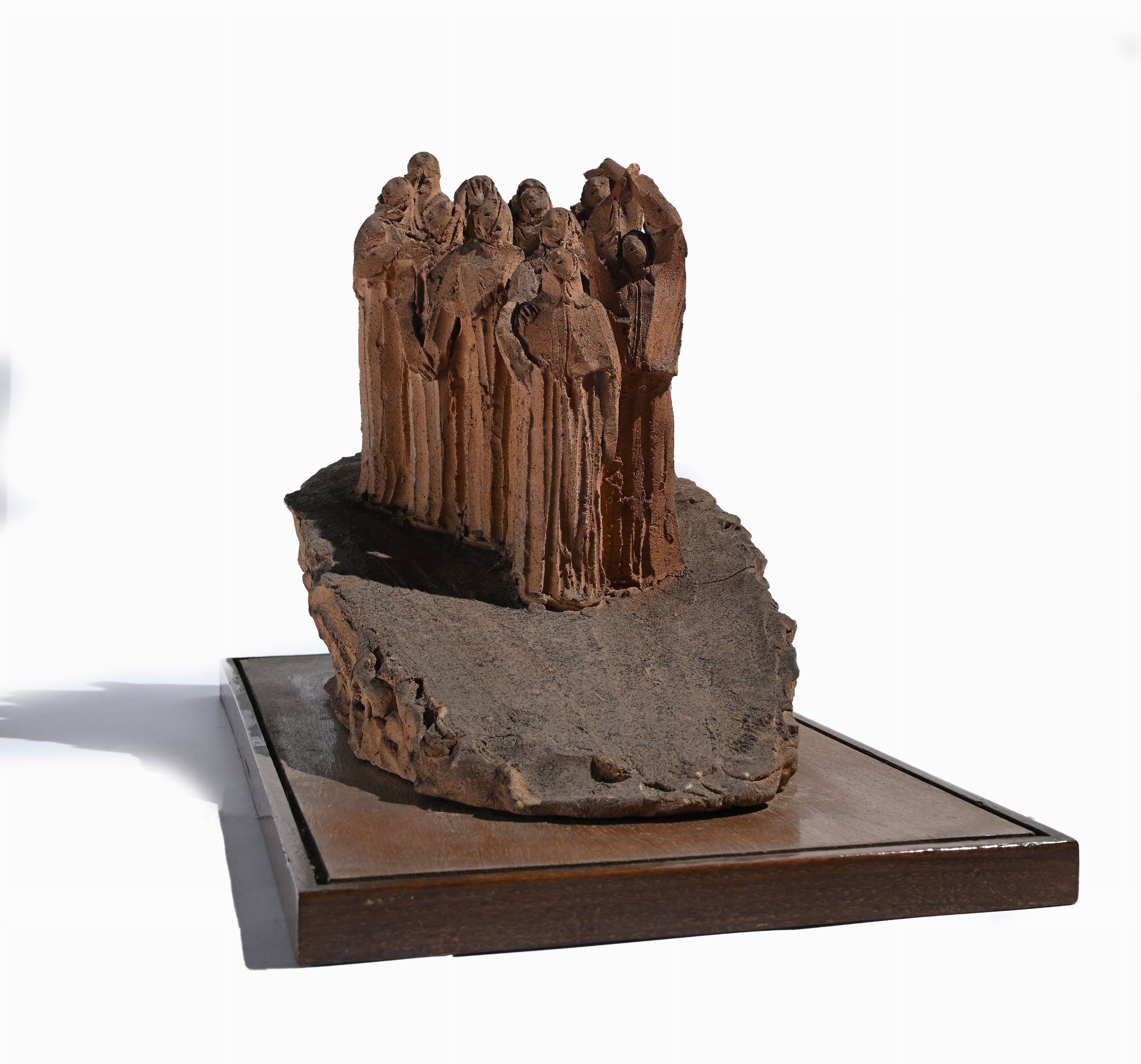 La soluzione ricorda da vicino altre composizioni come il gruppo dei Briganti (262) proposto in più versioni, terracotta e maiolica, e il gruppo delle Collegiali (Catalogo ragionato n. 267), ideate in una composizione circolare con vuoto al centro, tutte opere risalenti ai primi anni ’30; sempre al 1932 circa risale infine la terracotta in esemplare unico intitolata Tragedia greca (Catalogo ragionato n. 317) probabilmente collegata alla presente scultura se non altro per la tematica teatrale.