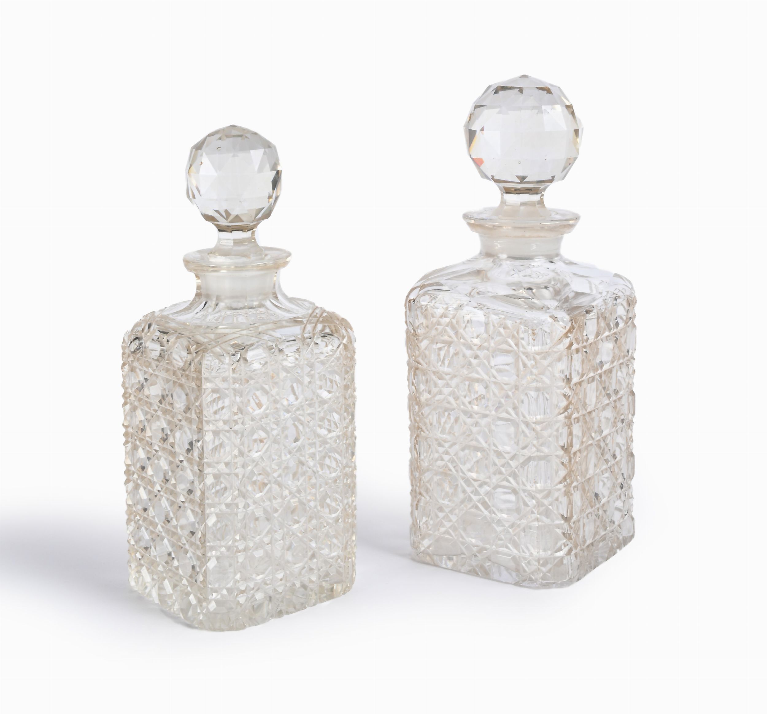Due bottiglie da liquore in cristallo