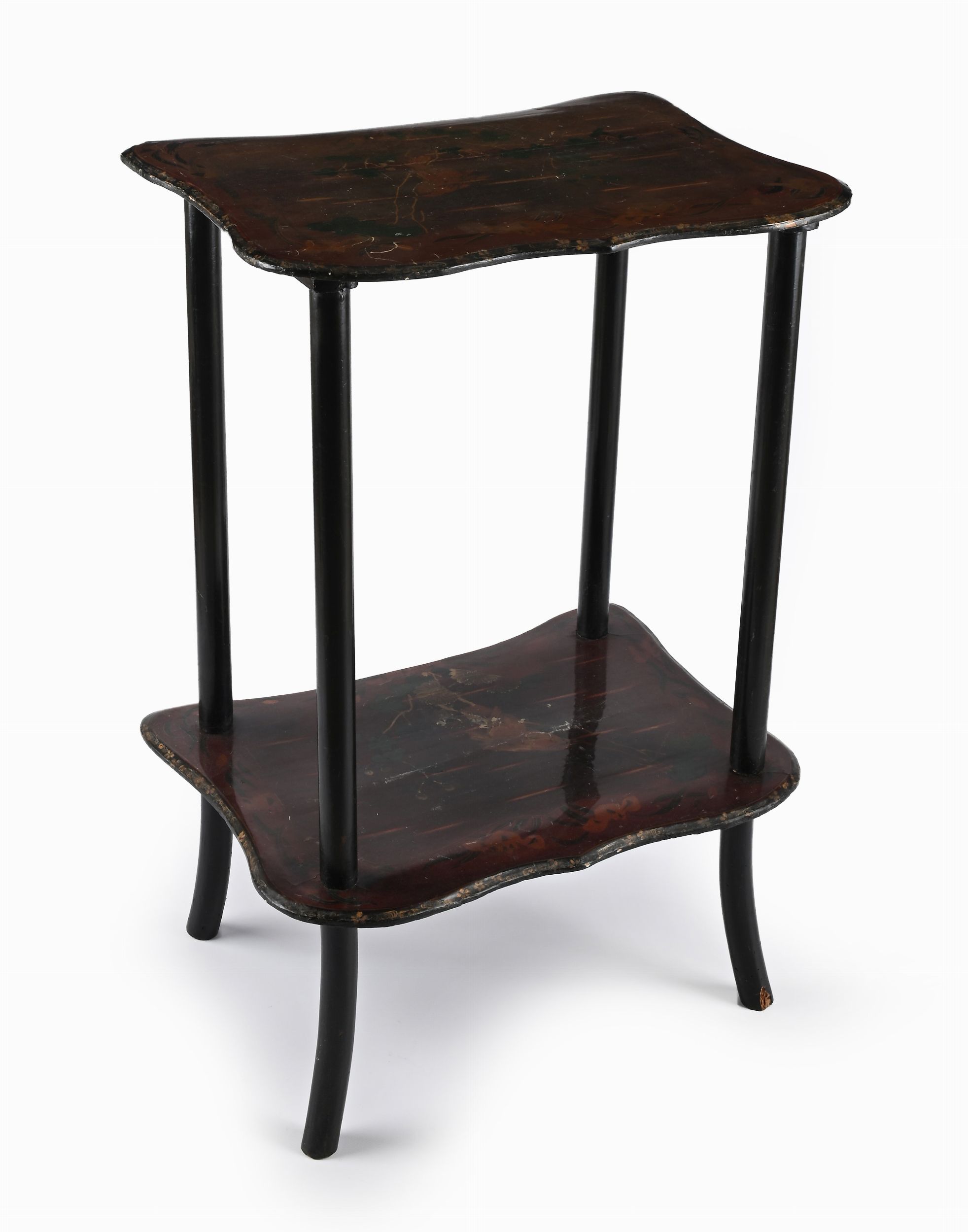 Etagère a due ripiani in legno laccato, inizi del XX secolo