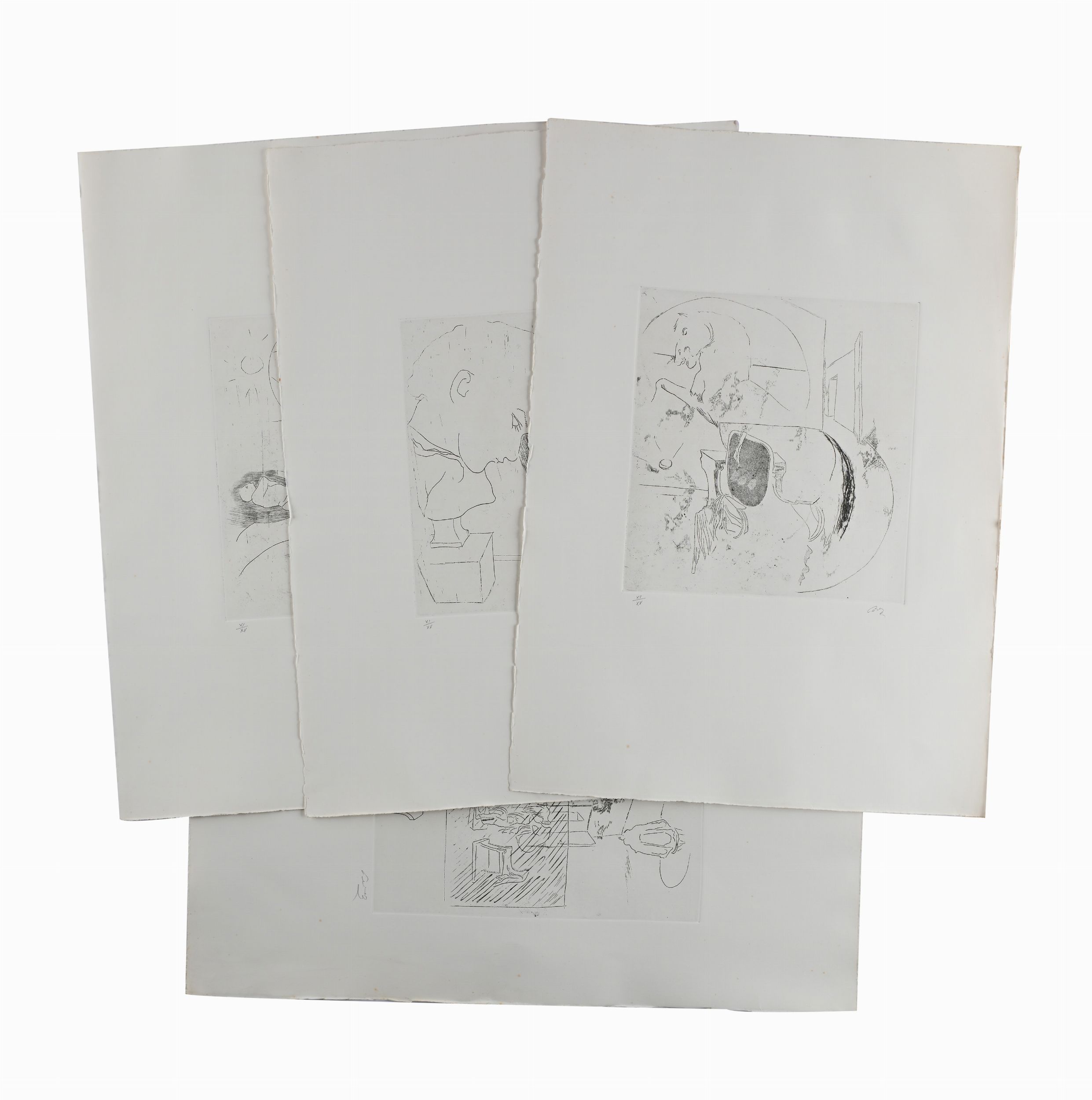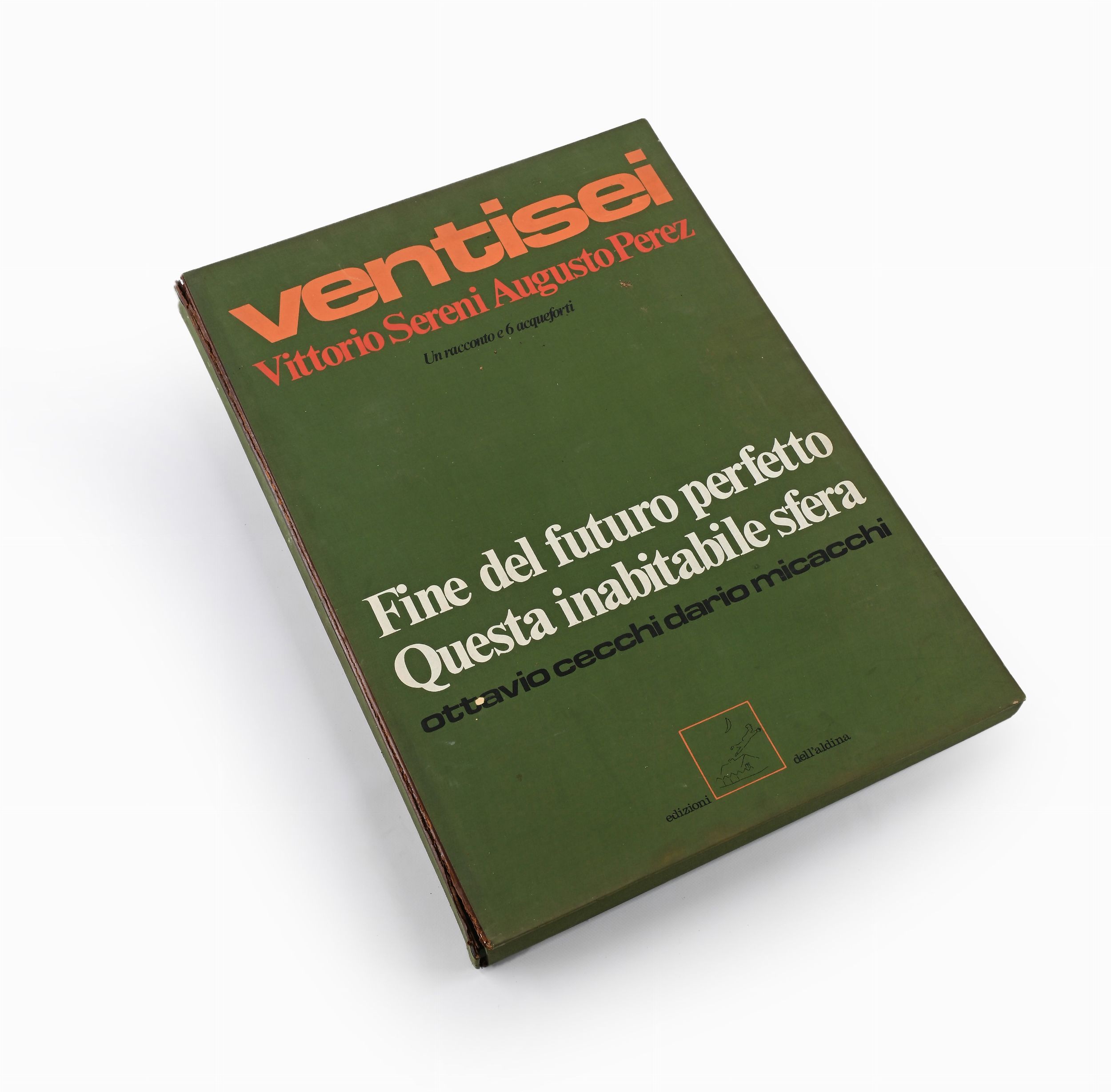 Cartella di Vittorio Sereni con 6 acquaforti di Augusto Perez, tutte firmate e numerate Perez XI/XV. Ognuna misura cm 70x50