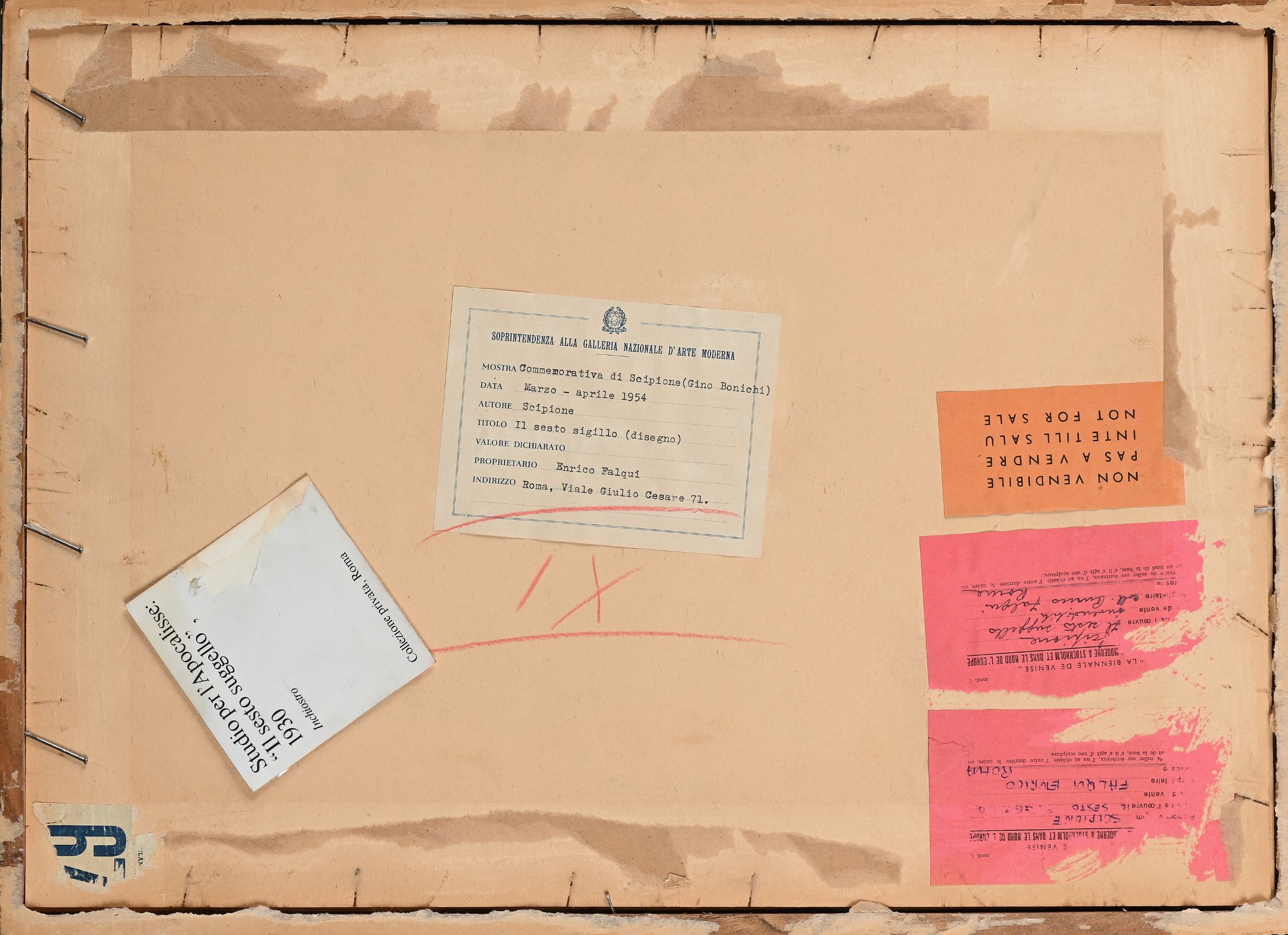 Al verso reca etichetta della Sovrintendenza alla Galleria Nazionale D'Arte Moderna, Mostra Commemorativa di Scipione, Marzo-Aprile 1954.
