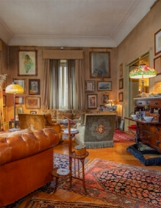 Tra gli arredi una raffinata selezione di mobili ed oggetti liberty tra cui spiccano alcune lampade di Louis Comfort Tiffany per Tiffany Studios New York.|