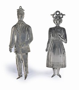 cm 3,5x19x19 e cm 4x27x9 una di forma quadrangolare decorata in oro e argento da una farfalla ed un ramo di convolvoli, [..]
