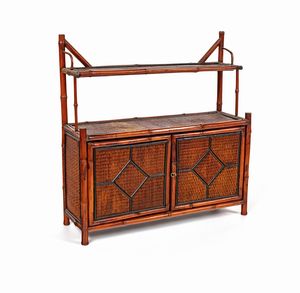 cm 98x143x38 struttura a giorno di linea squadrata in legno tornito ad imitazione del bambł e sedili sormontati [..]