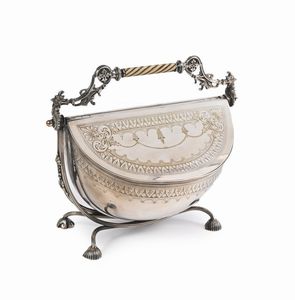 cm 19x24x15 corpo semisferico con palmette e ghirlande minuziosamente incise, motivi ripetuti su i due elementi [..]