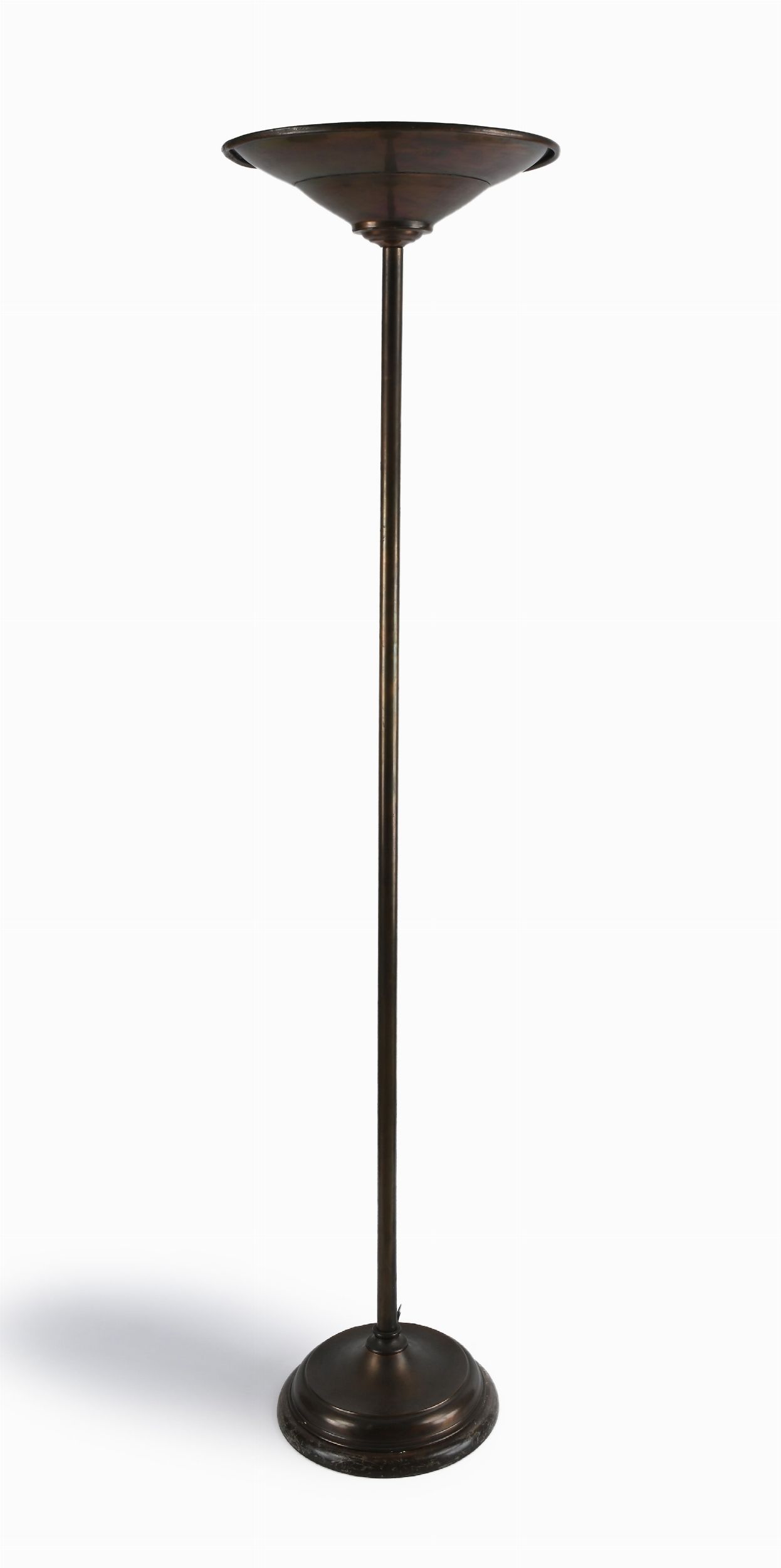 lungo stelo cilindrico su piede circolare, ampio diffusore conico rivolto verso l'alto