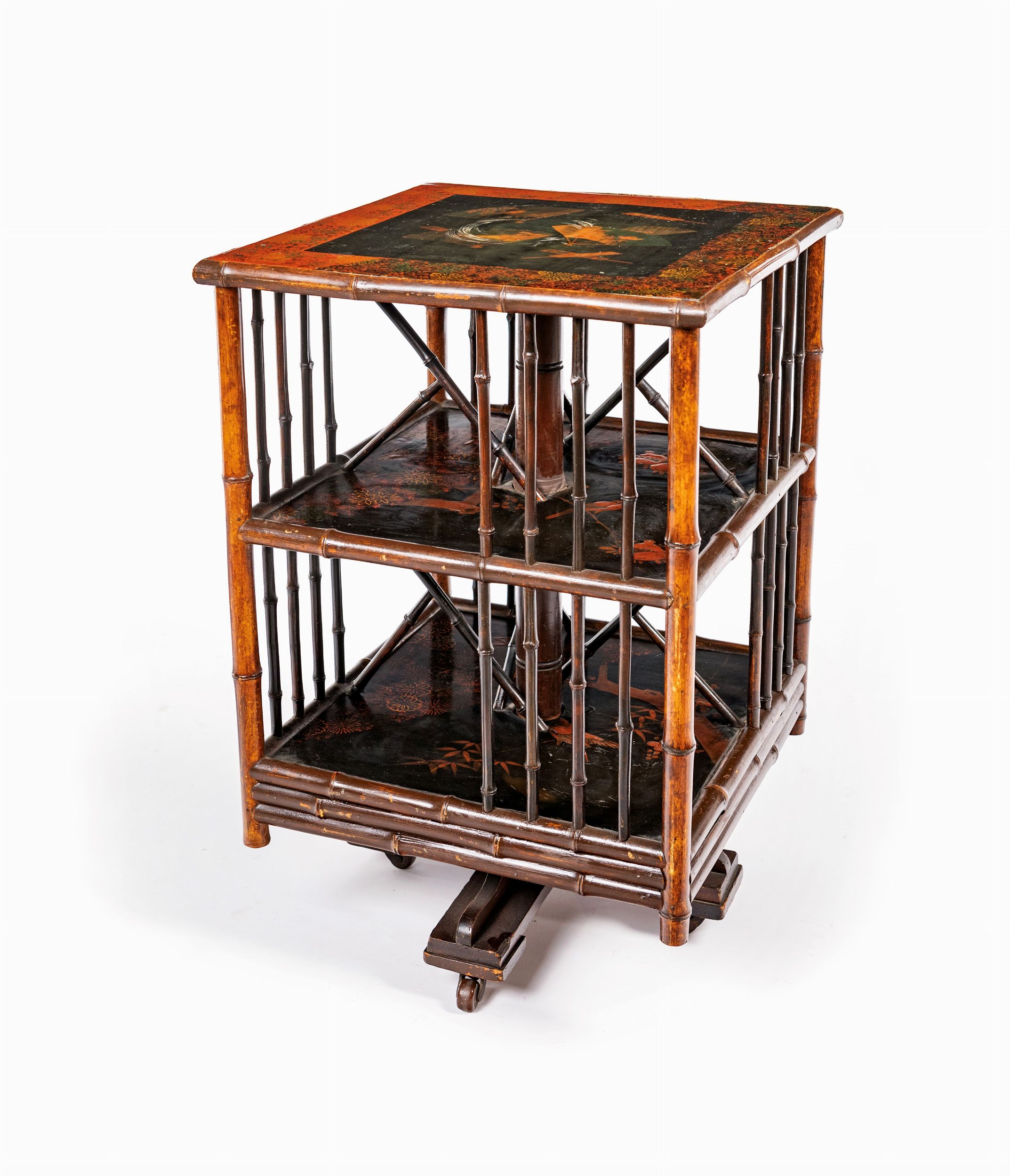 Libreria girevole in bambù e lacca, nei modi della Maison Pierret & Vibert, Francia, fine del XIX secolo  - Asta La Collezione Enrico e Antonello Falqui. Di padre in figlio una vita nell'arte. - Associazione Nazionale - Case d'Asta italiane
