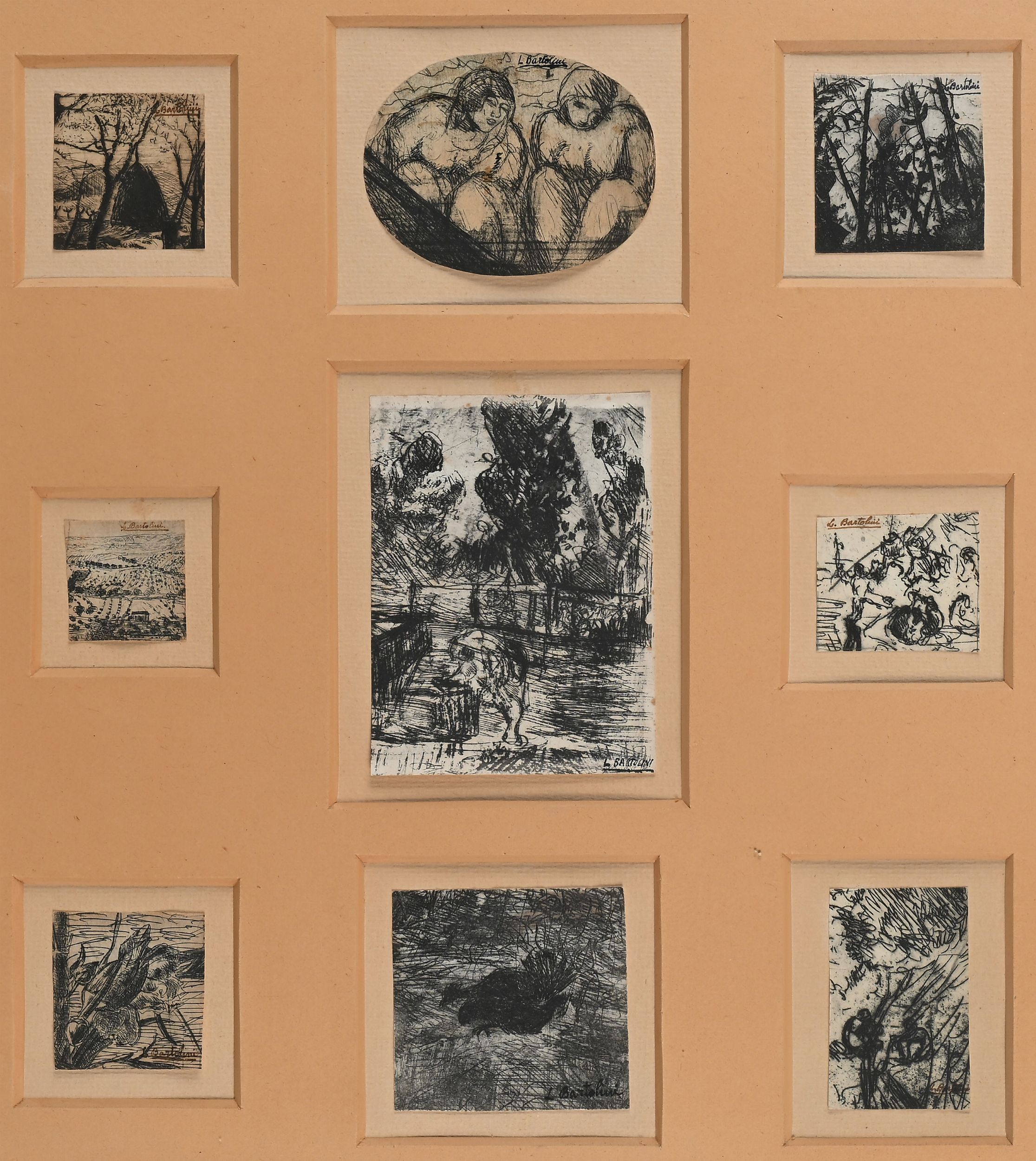 1- Covone, acquaforte, cm 5,5x5,5. Firma in alto a destra L. Bartolini