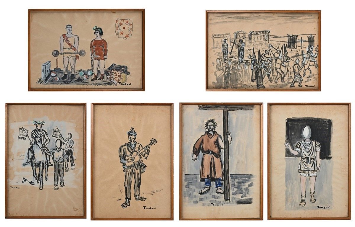 Orfeo Tamburi : Lotto di sei disegni  - Asta La Collezione Enrico e Antonello Falqui. Di padre in figlio una vita nell'arte. - Associazione Nazionale - Case d'Asta italiane