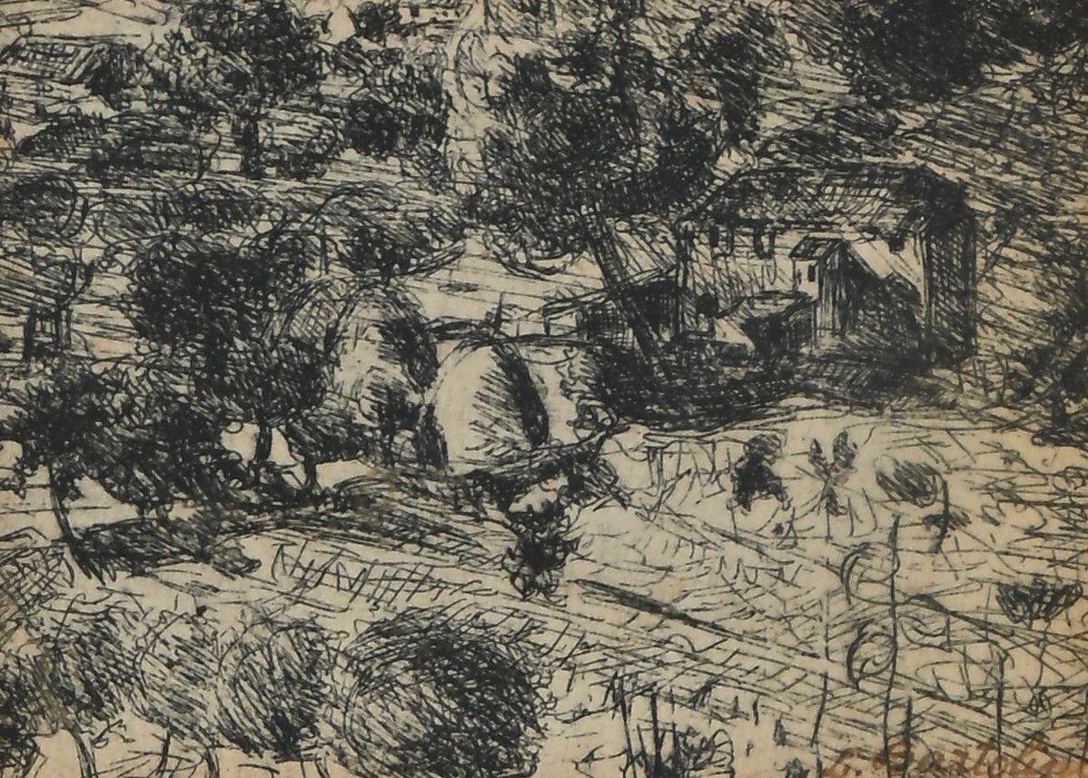 Acquaforte, cm 6x8,6 - con cornice diametro cm 26