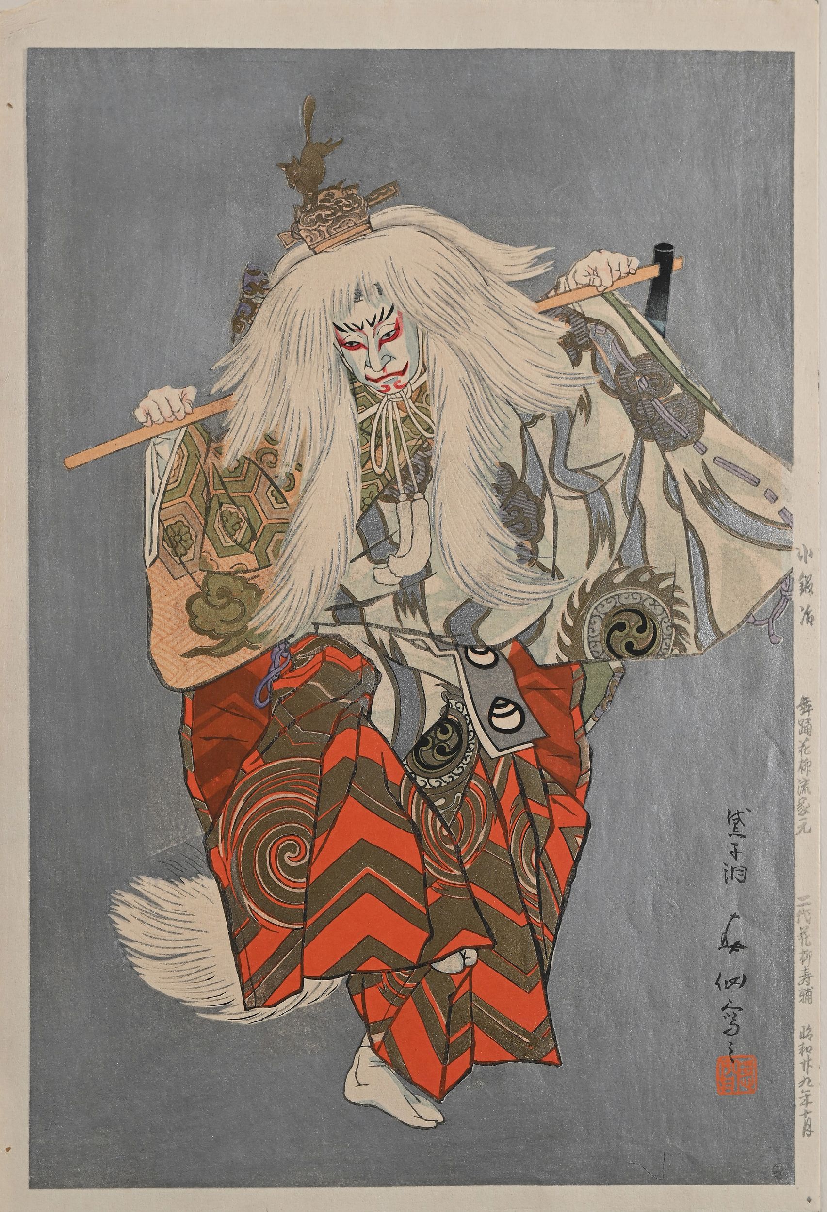 Natori  Shunsen : Ritratto dell'attore Hanayagi Jusuke come Spirito Volpe nel ruolo di Kokaji  - Asta La Collezione Enrico e Antonello Falqui. Di padre in figlio una vita nell'arte. - Associazione Nazionale - Case d'Asta italiane