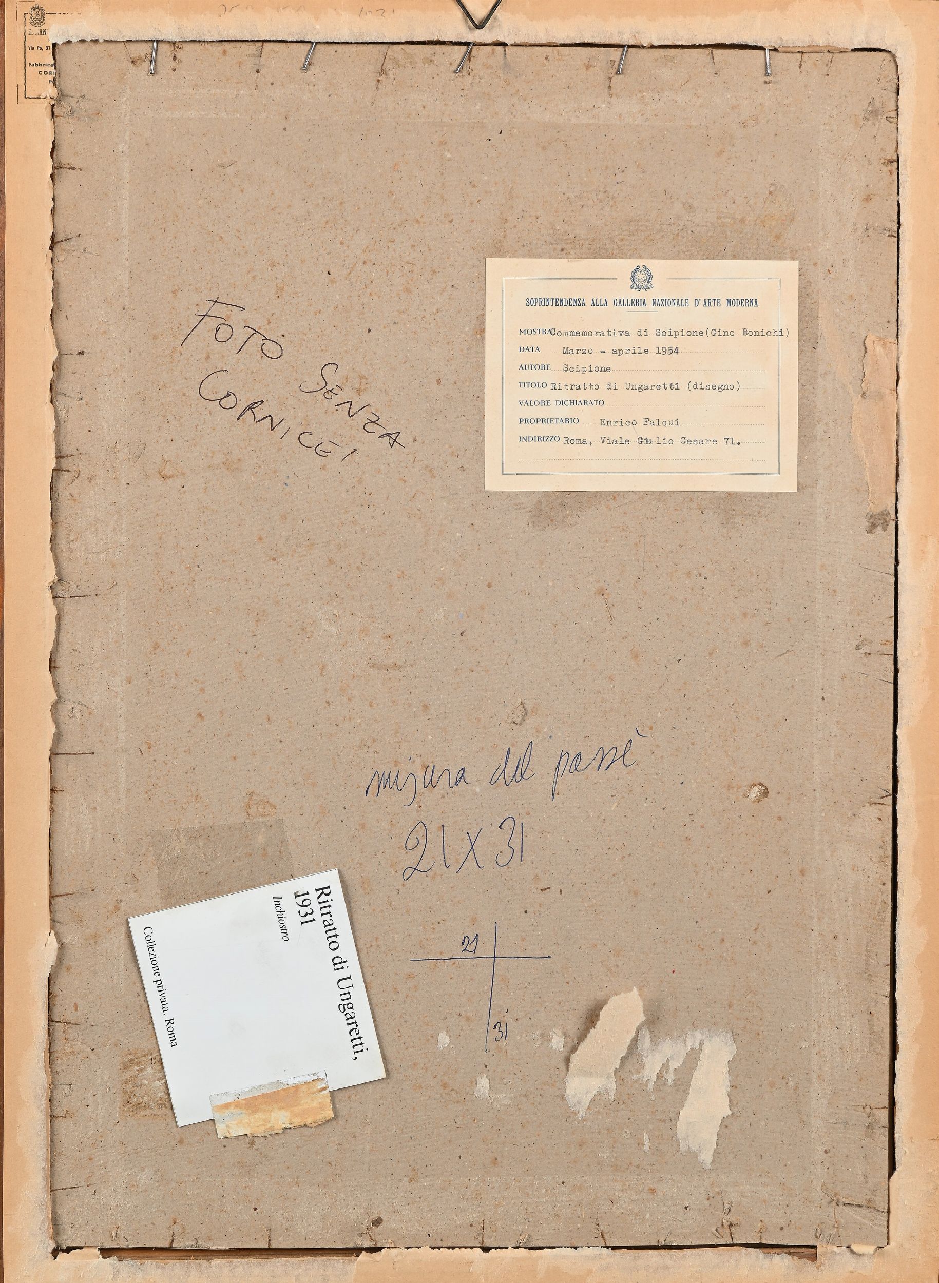 1931 Al verso reca etichetta della Sovrintendenza alla Galleria Nazionale D'Arte Moderna, Mostra Commemorativa di Scipione, Marzo-Aprile 1954
