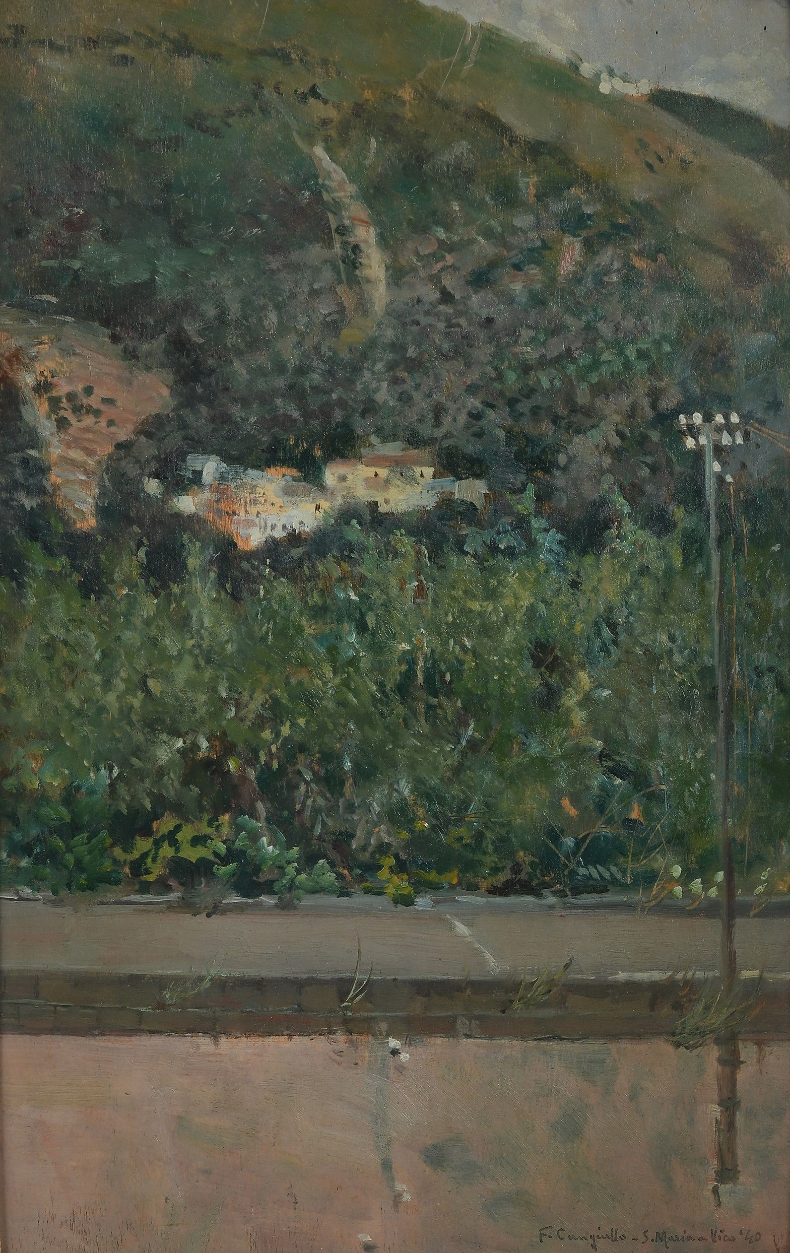 1940 Firma, data e titolo in basso a destra F. Cangiullo - S. Maria a Vico '40. Al verso reca dedica A un amico di poesia e d'arte Falqui. F. Cangiullo, Roma, Agosto 1948.