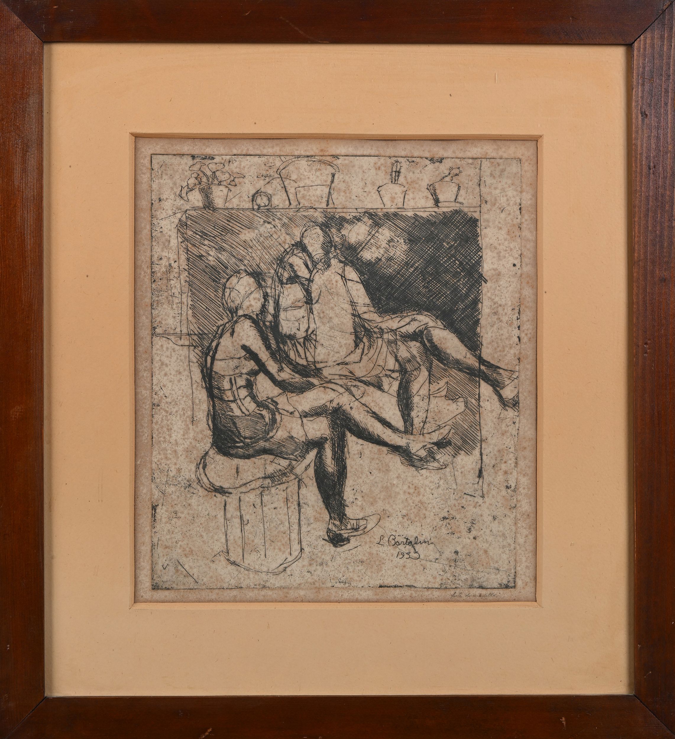 1933 Titolo in basso a destra Sosta di modelle. Firma e data in lastra L. Bartolini 1933.