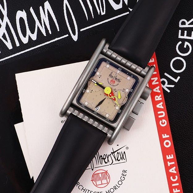 Quadrante: argento, indici geometrici, datario, contatori per 12 ore e 30 minuti. Sfere geometriche colorate