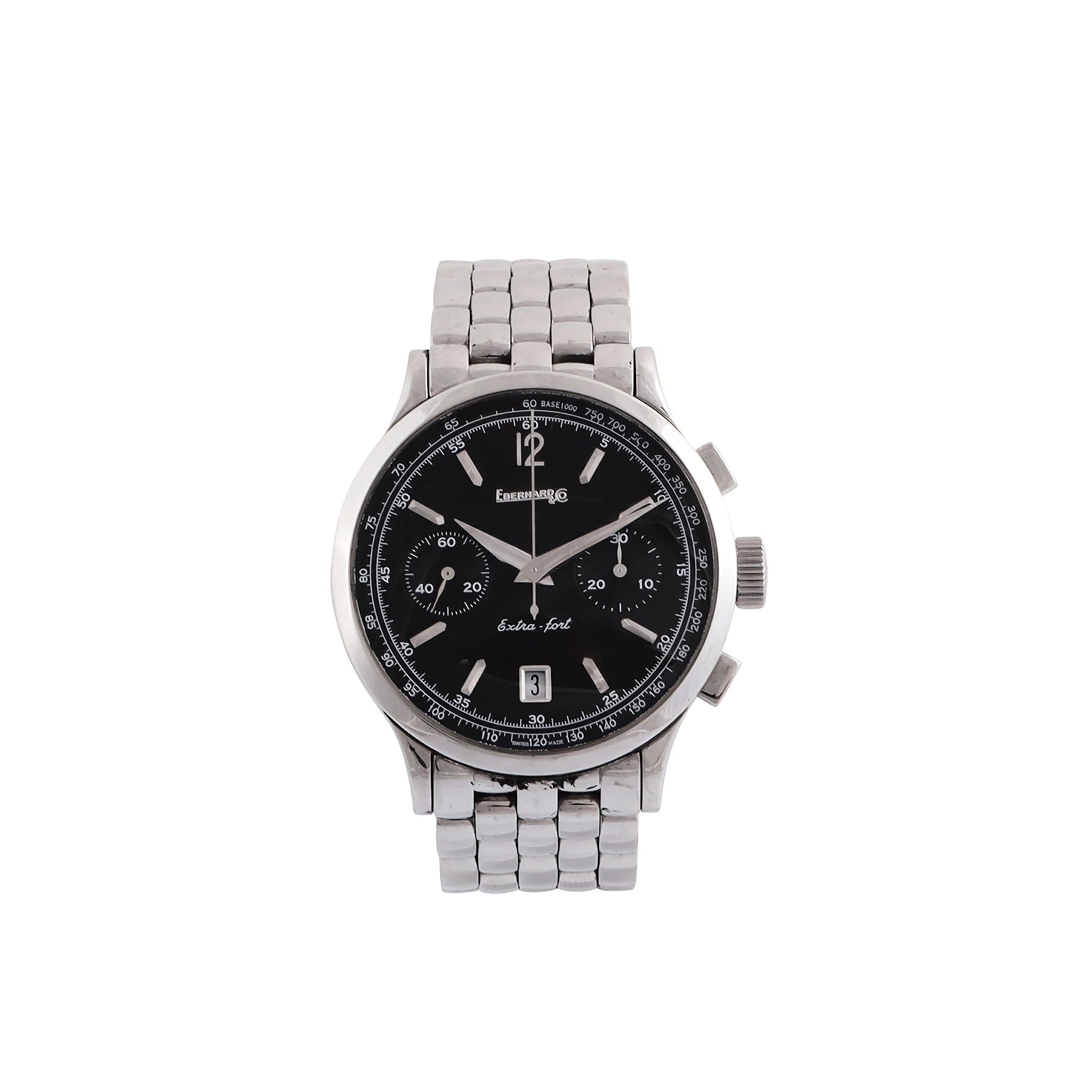 Quadrante: nero, indici a bastone, datario, contatori per i secondi e 30 minuti. Sfere Dauphine