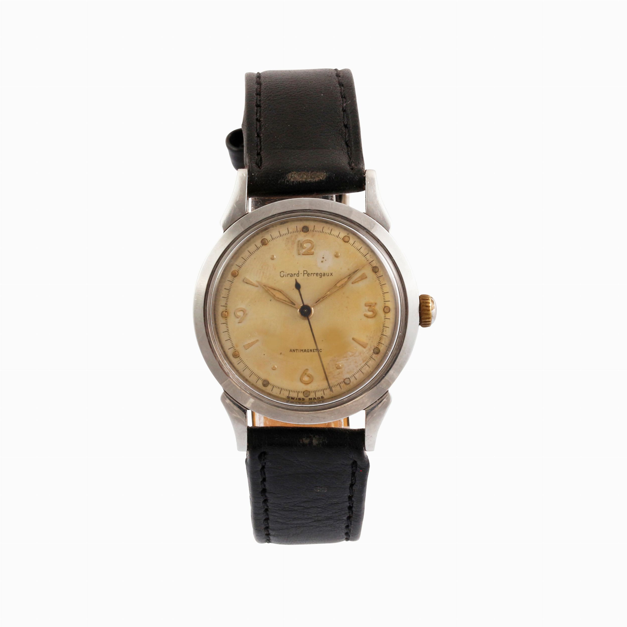 Ref: 6140Cassa: in acciaio, fondello a viteQuadrante: patinato, numeri Arabi. Sfere LozengeMovimento: manualeDIAM: 34 mm