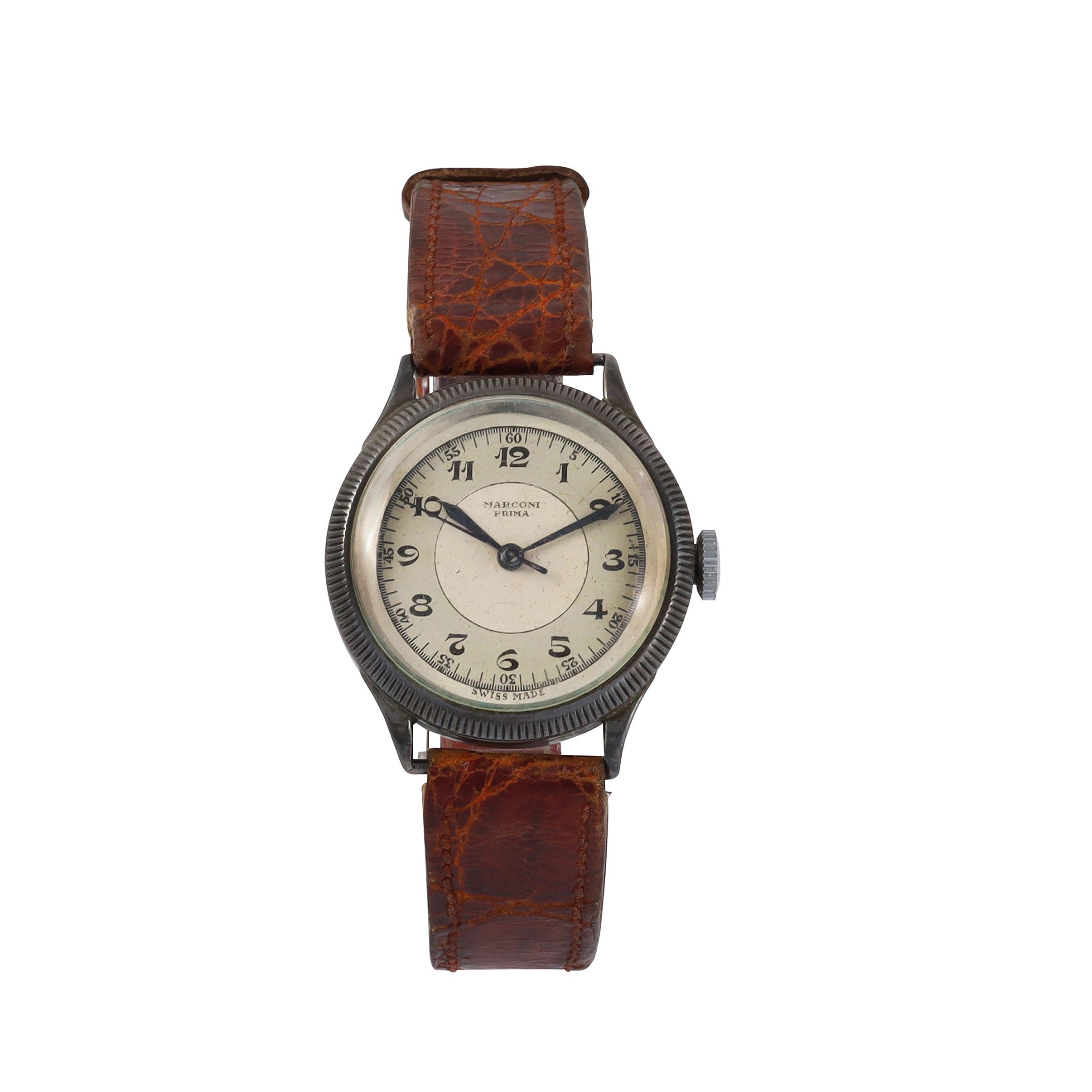 Ref: 1469, PrimaCassa: firmata Rolex in argento. fondello a viteQuadrante: bitonale, numeri Arabi. Sfere GladioMovimento: manuale firmato MarconiDIAM: 32 mm