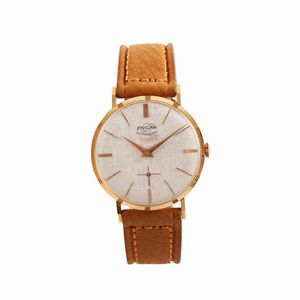 Cassa: in oro giallo 18K, fondello a pressione Quadrante: argento, numeri arabi. Sfere a foglia Movimento: manuale, [..]