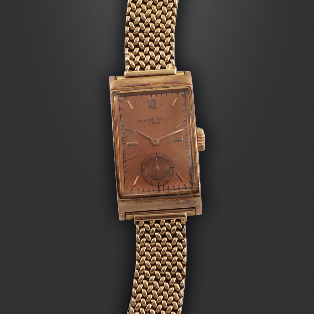 Quadrante: salmone, indici a bastone e numero Romano, contatore ausiliare dei secondi. Sfere a bastone