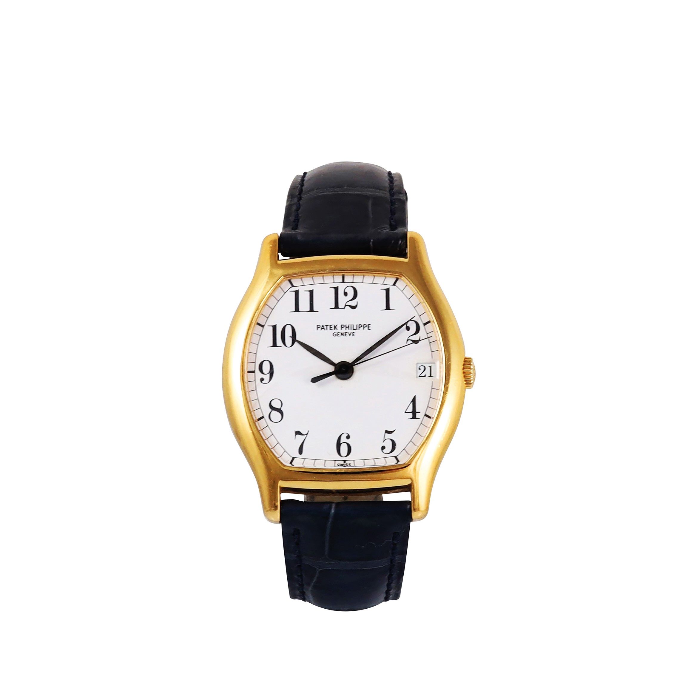 Nota: Questa referenza fu lanciata sul mercato nel 1994; la cassa fu prodotta da Favre-Perret, che realizzò casse anche per Movado, Omega, Vacheron Constantin e Rolex . Questo attuale esempio di Patek Philippe Ref. 5030 in oro giallo è anche uno dei primi esemplari prodotti con quadrante in porcellana bianca e numeri arabi neri dipinti